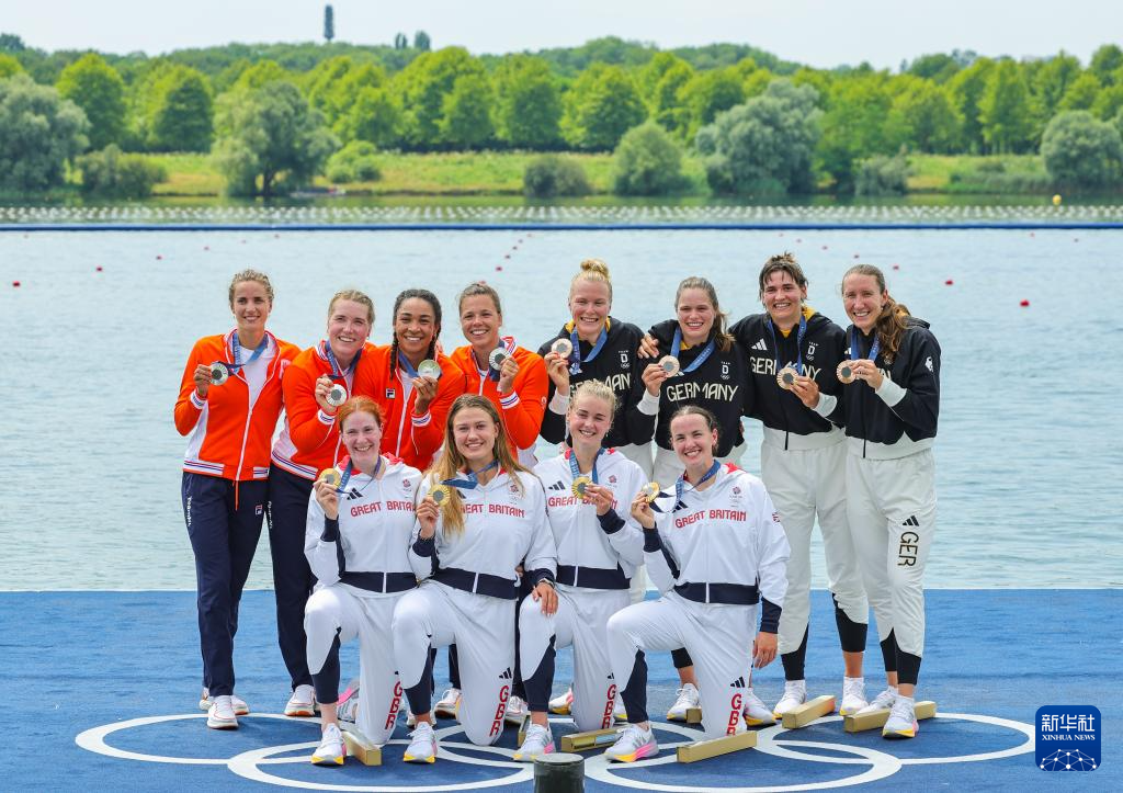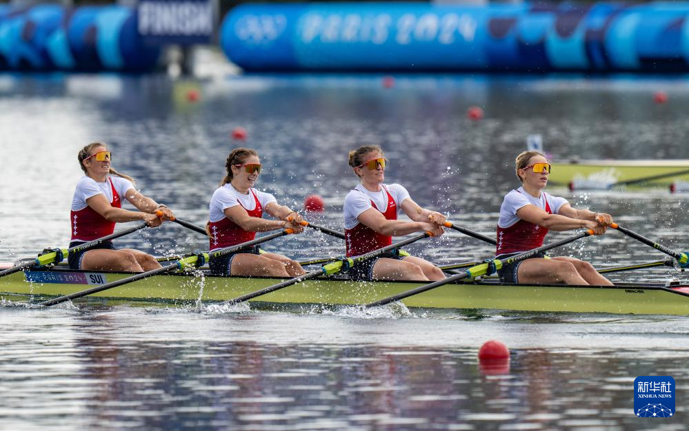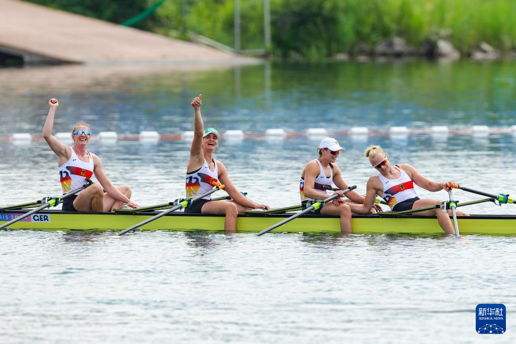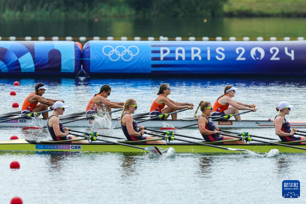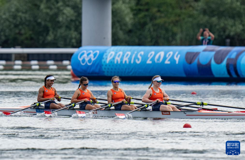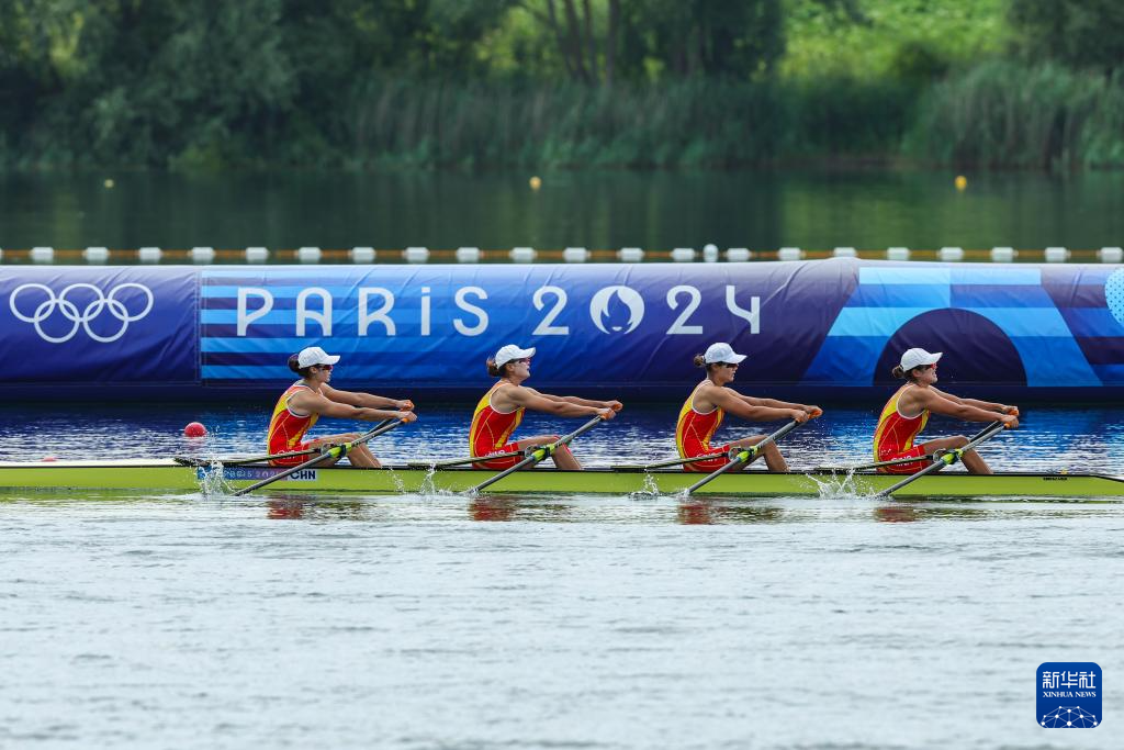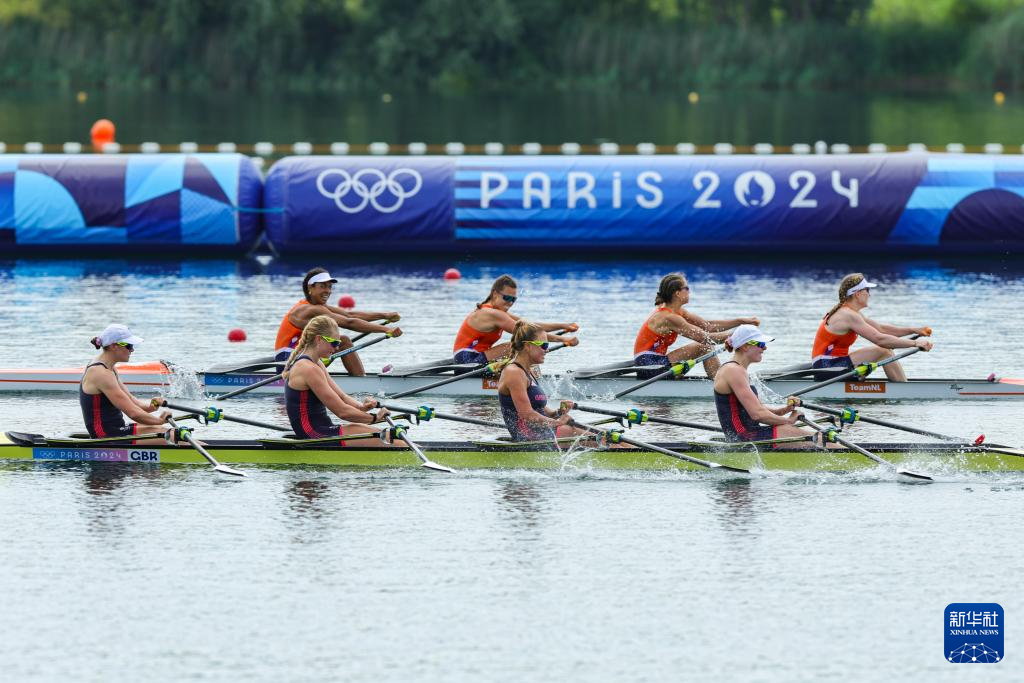当日,巴黎奥运会赛艇女子四人双桨A组决赛在马恩河畔韦尔水上体育场举行。