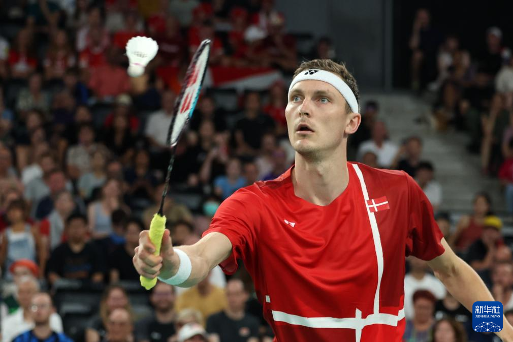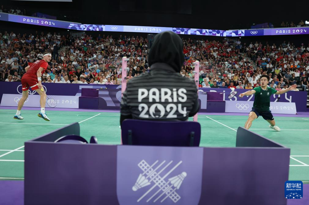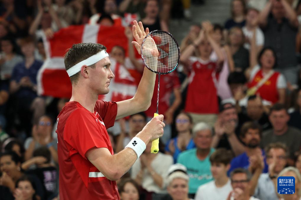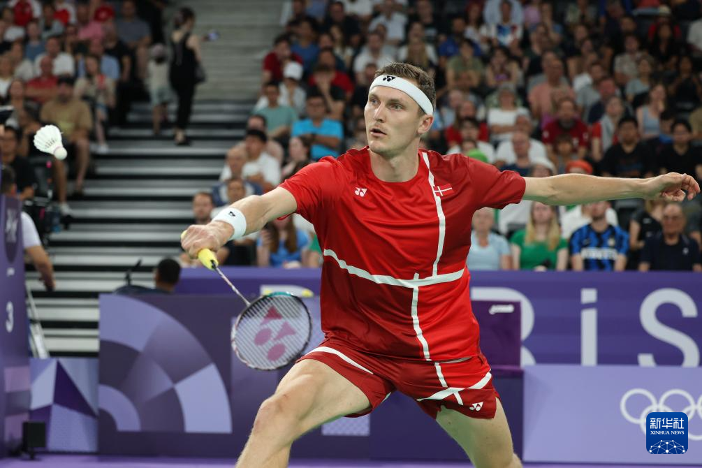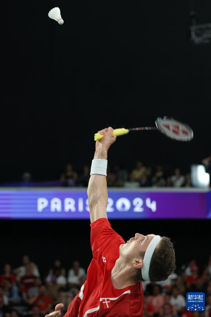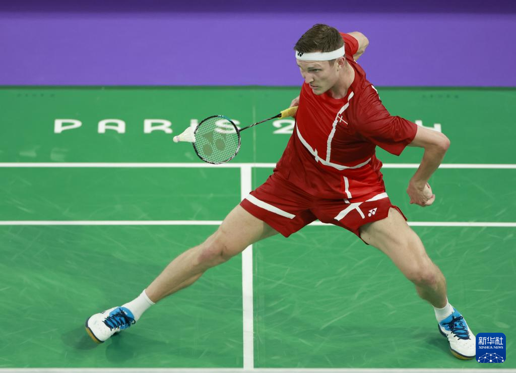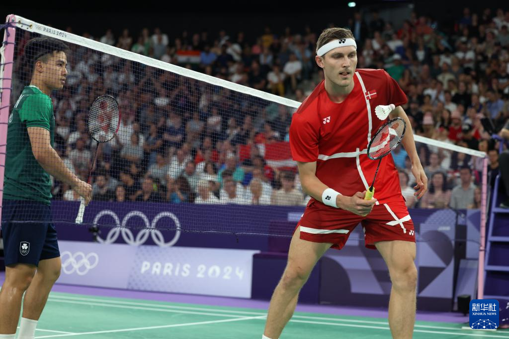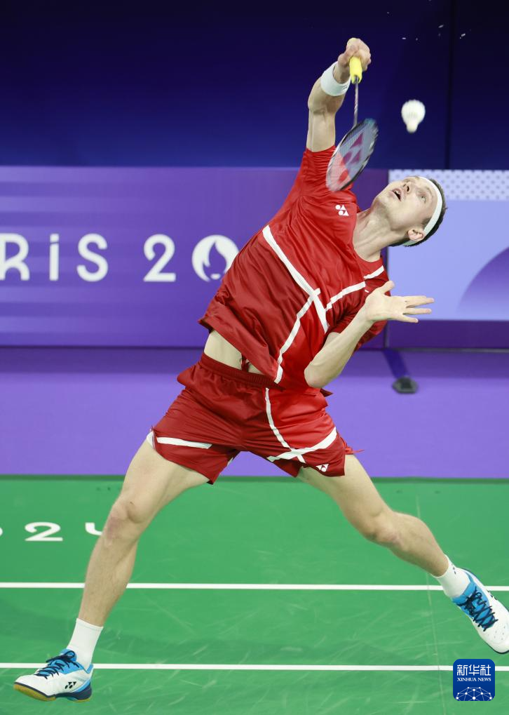 当日,在巴黎奥运会羽毛球项目男子单打小组赛P组比赛中,丹麦选手安赛龙2比0战胜爱尔兰选手阮日。