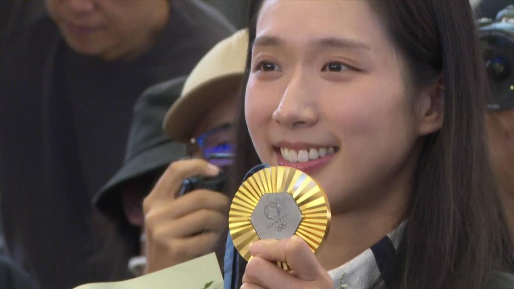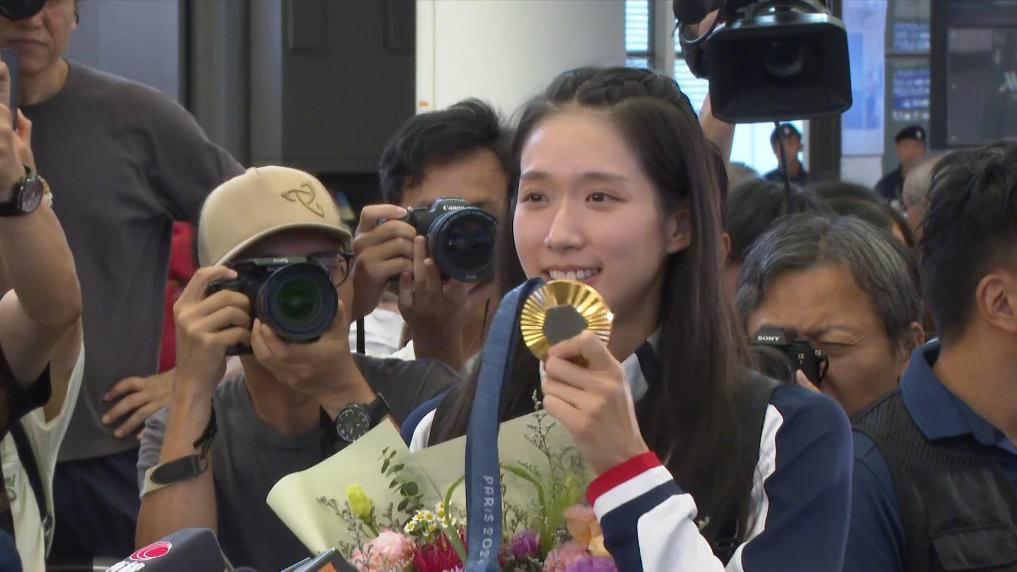 巴黎奥运会香港首块金牌得主江旻憓8月1日凯旋抵港,受到热烈欢迎。