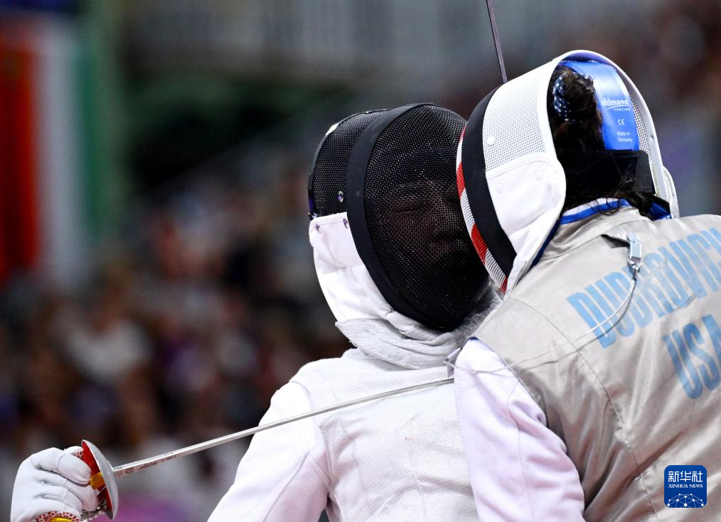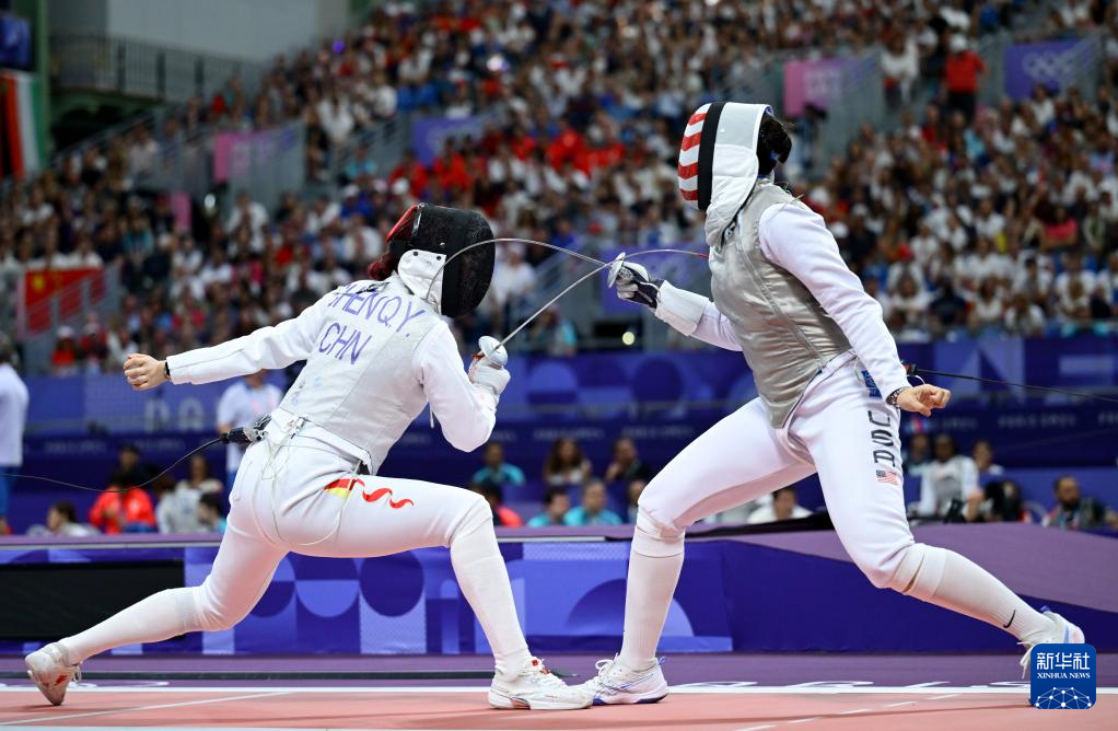 8月1日,中国队选手陈情缘(左)在与美国队选手杰奎琳的比赛中。新华社记者 张宏祥 摄