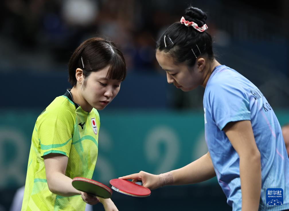 8月1日,日本选手平野美宇(左)在比赛后。新华社记者 王东震 摄