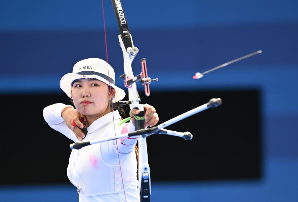 7月31日,韩国选手南秀贤在女子个人1/16比赛中。新华社记者 贺灿铃 摄