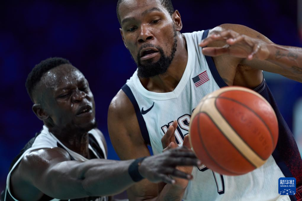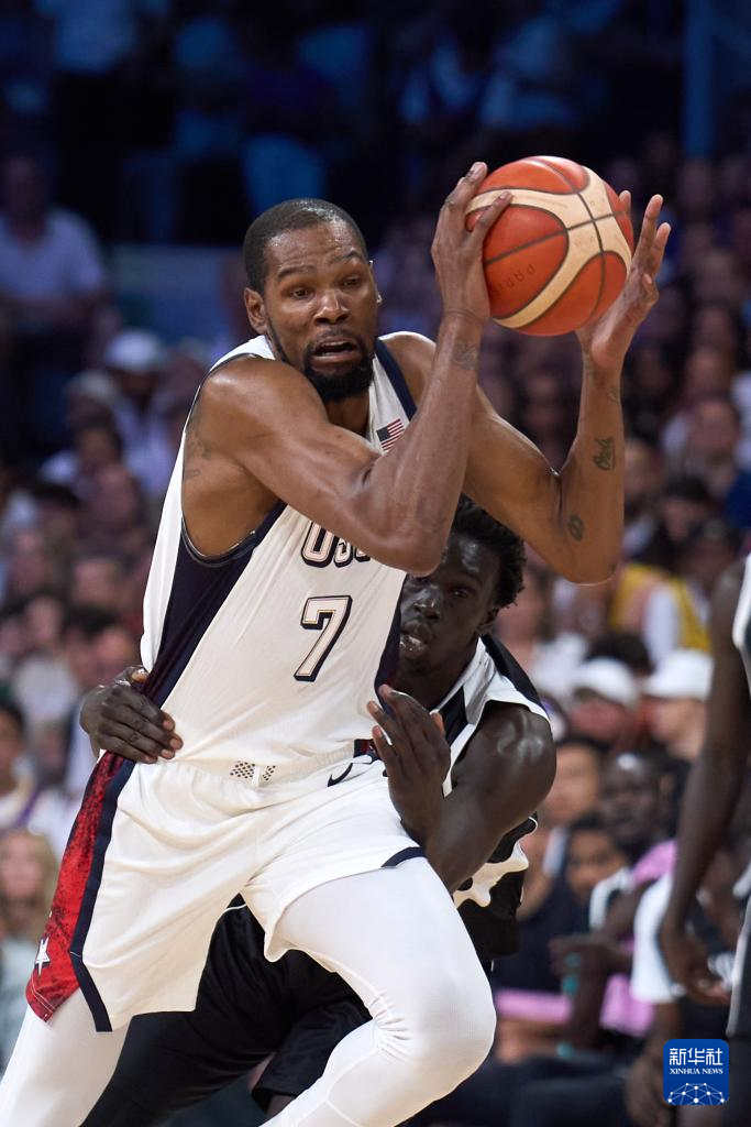 7月31日,美国队球员杜兰特(右)在比赛中。新华社记者 孟鼎博 摄