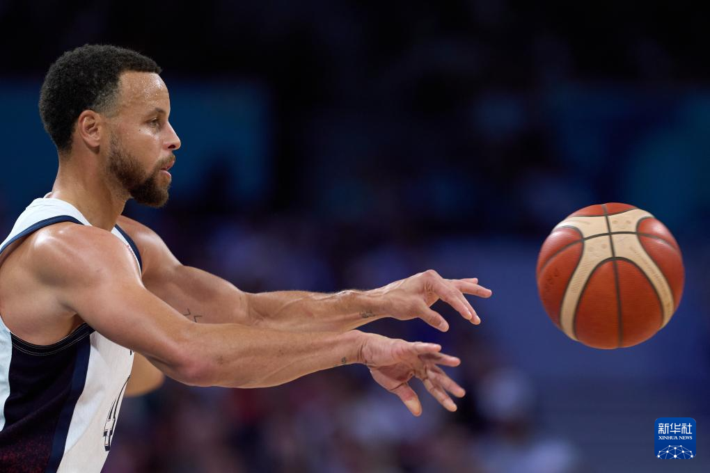 7月31日,美国队球员库里在比赛中传球。新华社记者 孟鼎博 摄