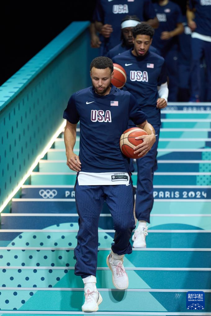 7月31日,美国队球员库里在比赛前出场。新华社记者 孟鼎博 摄