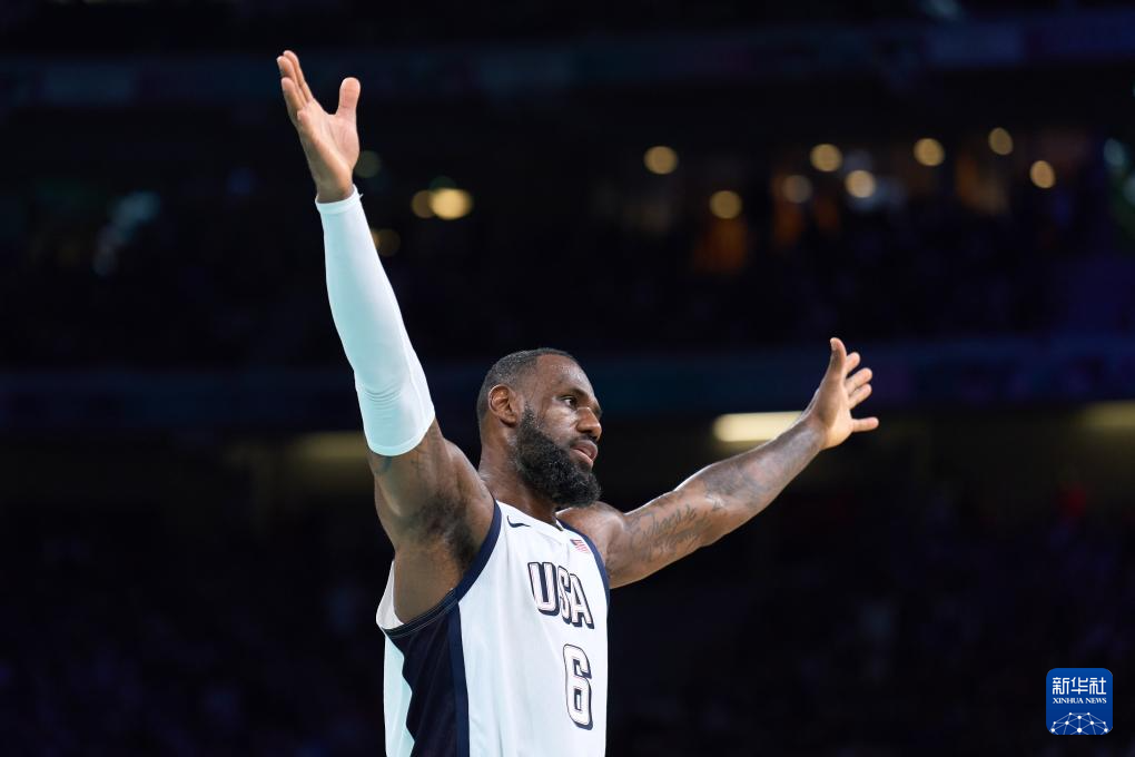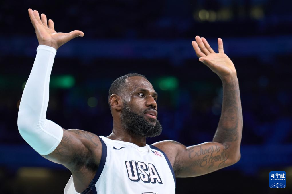 7月31日,美国队球员詹姆斯在比赛中庆祝得分。新华社记者 孟鼎博 摄