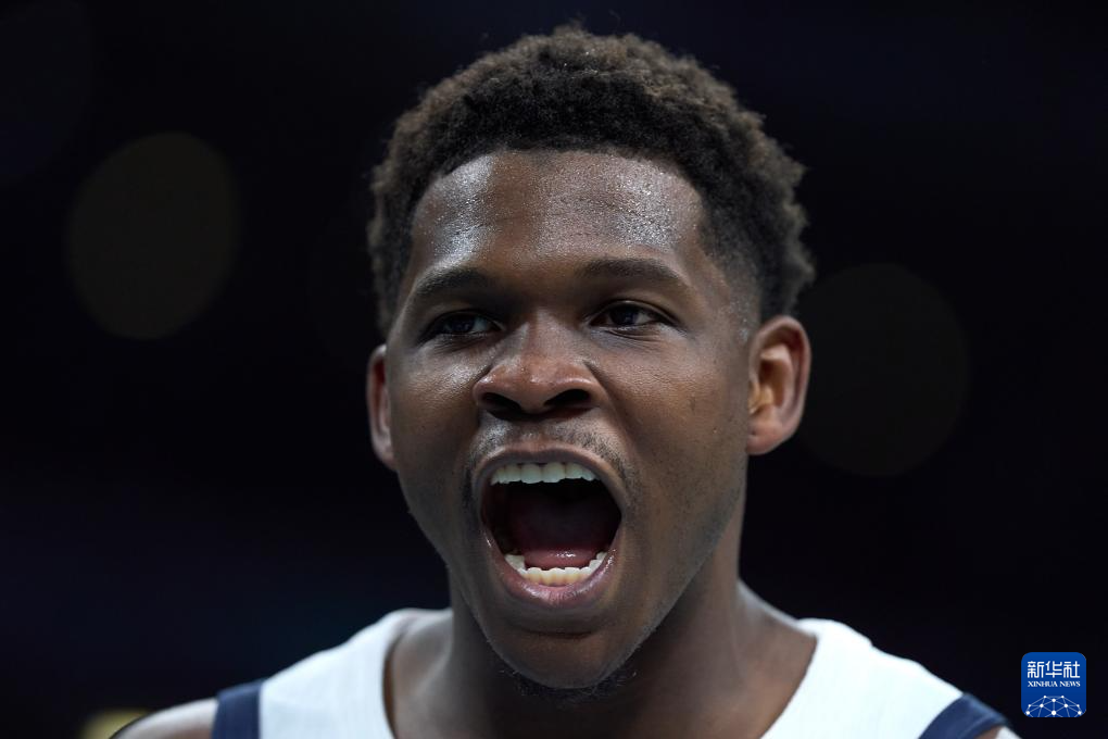7月31日,美国队球员爱德华兹在比赛中庆祝得分。新华社记者 孟鼎博 摄
