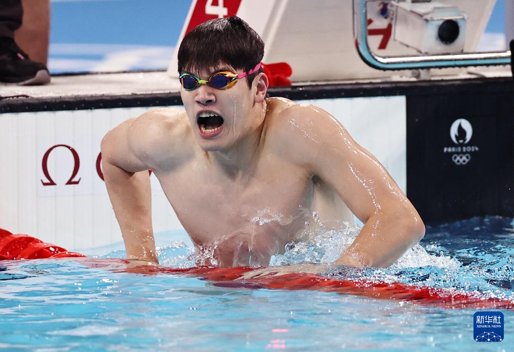 7月31日,中国选手潘展乐在决赛后。新华社记者 夏一方 摄