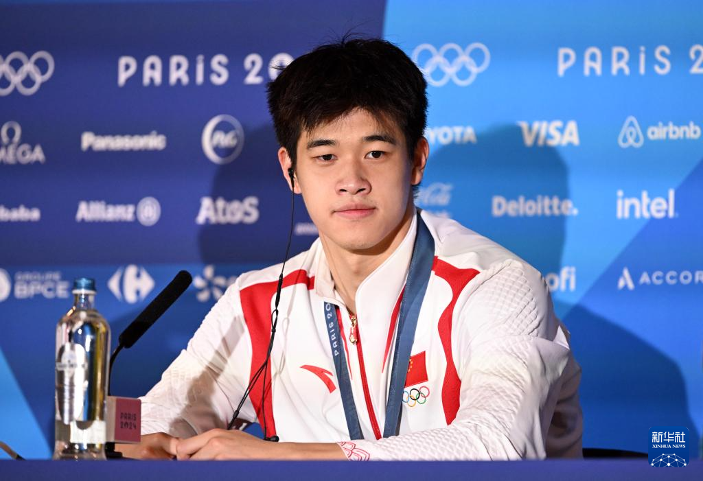 7月31日,中国选手潘展乐在赛后新闻发布会上。新华社记者 夏一方 摄