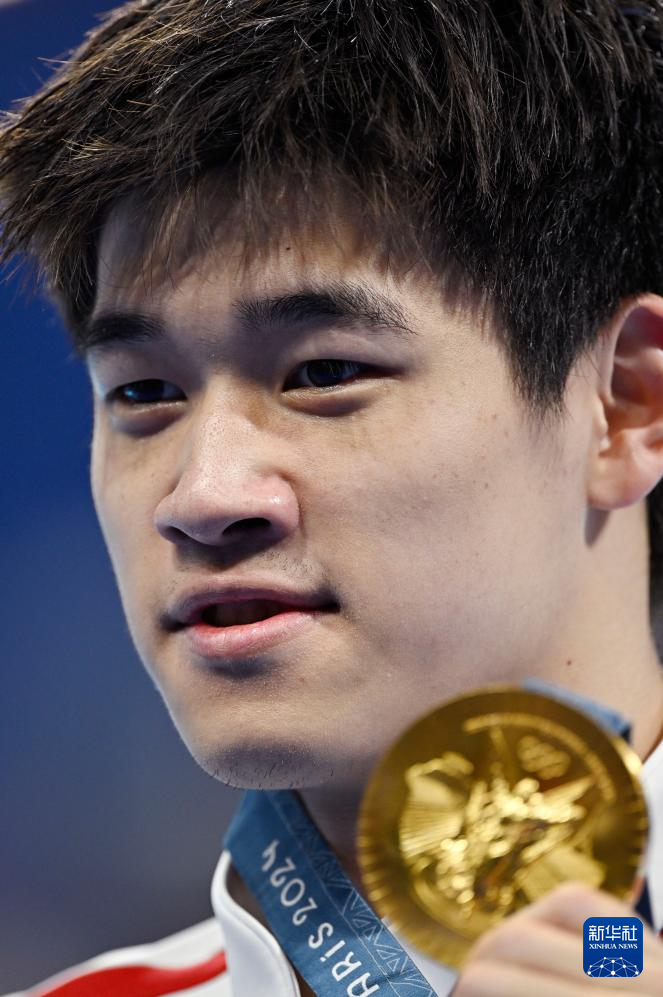 7月31日,中国选手潘展乐在颁奖仪式上。新华社记者 杜宇 摄
