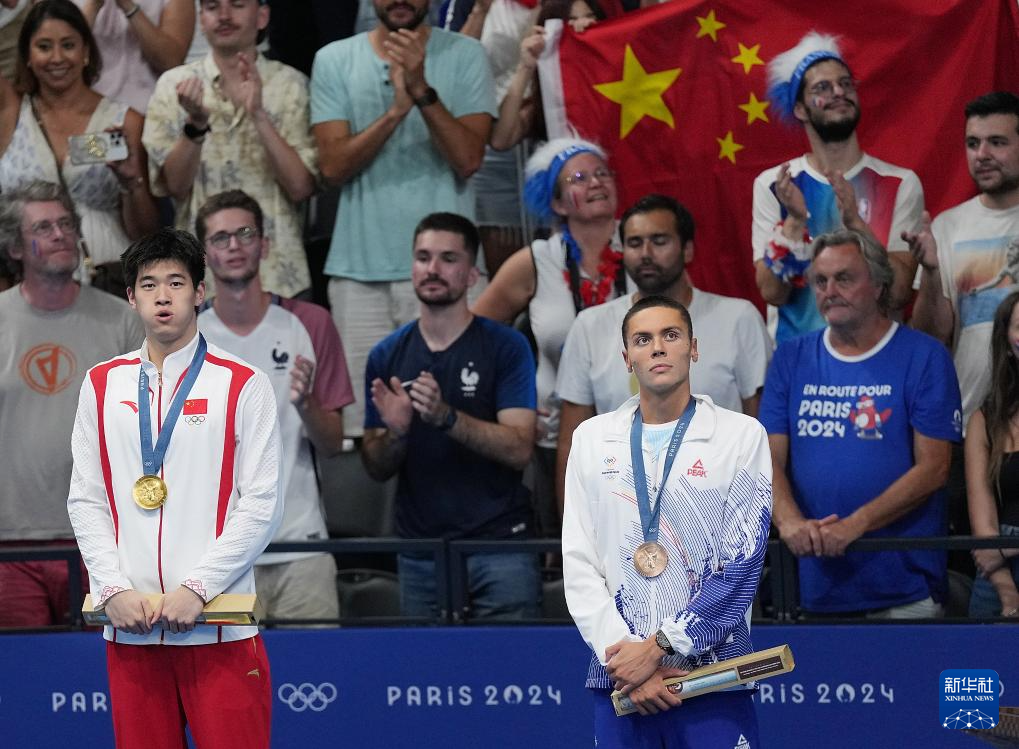 7月31日,中国选手潘展乐(前)在颁奖仪式上。新华社记者 夏一方 摄