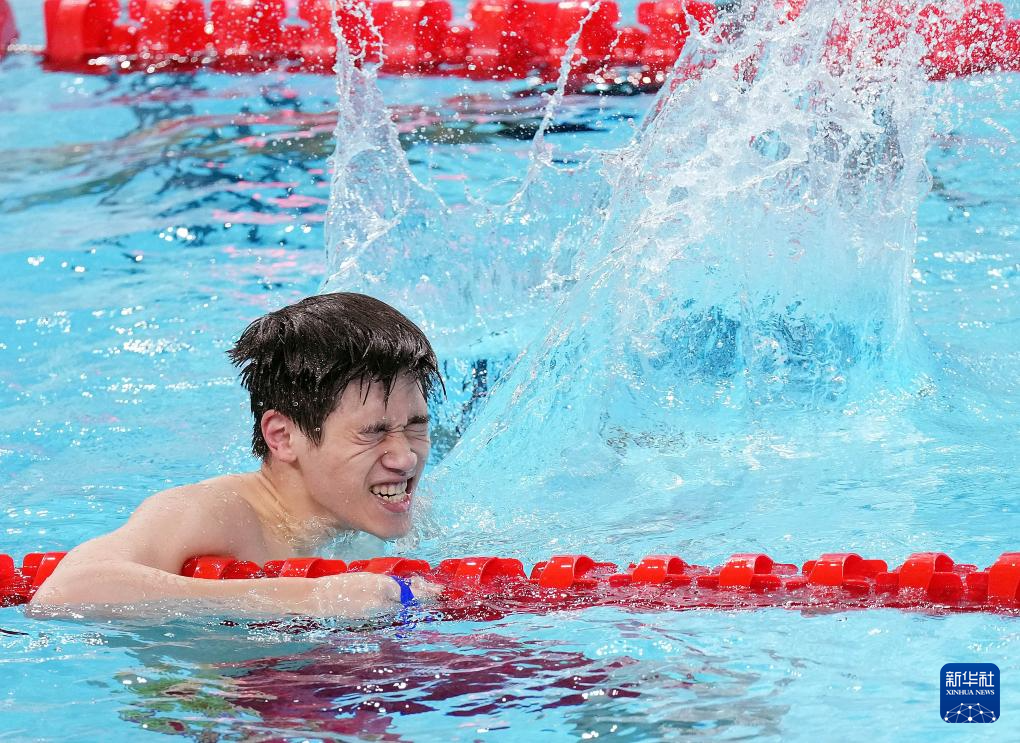 7月31日,潘展乐在比赛后庆祝夺冠。新华社记者 夏一方 摄