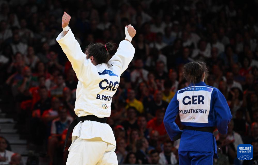 当日,在巴黎奥运会柔道女子70公斤级决赛中,克罗地亚选手马蒂奇战胜德国选手布特凯雷特,获得冠军。