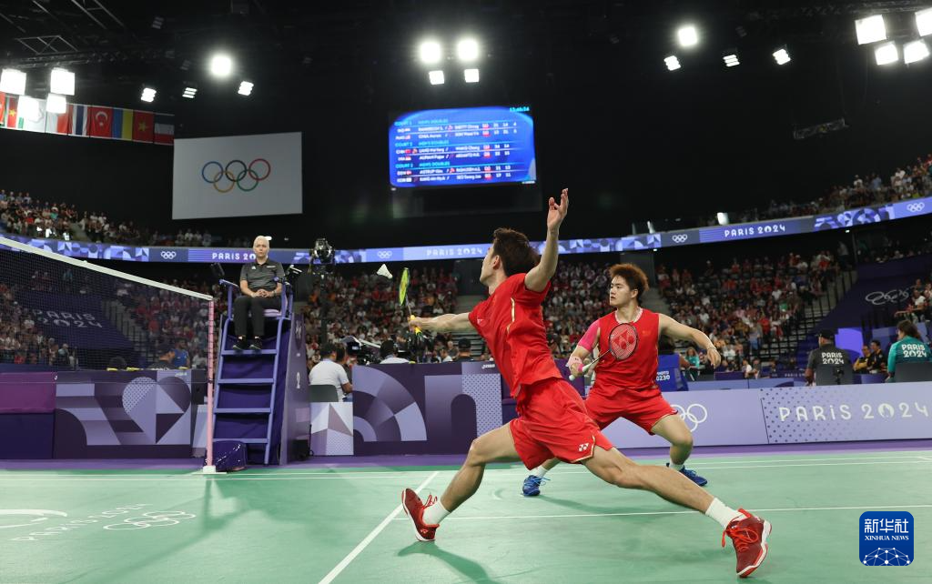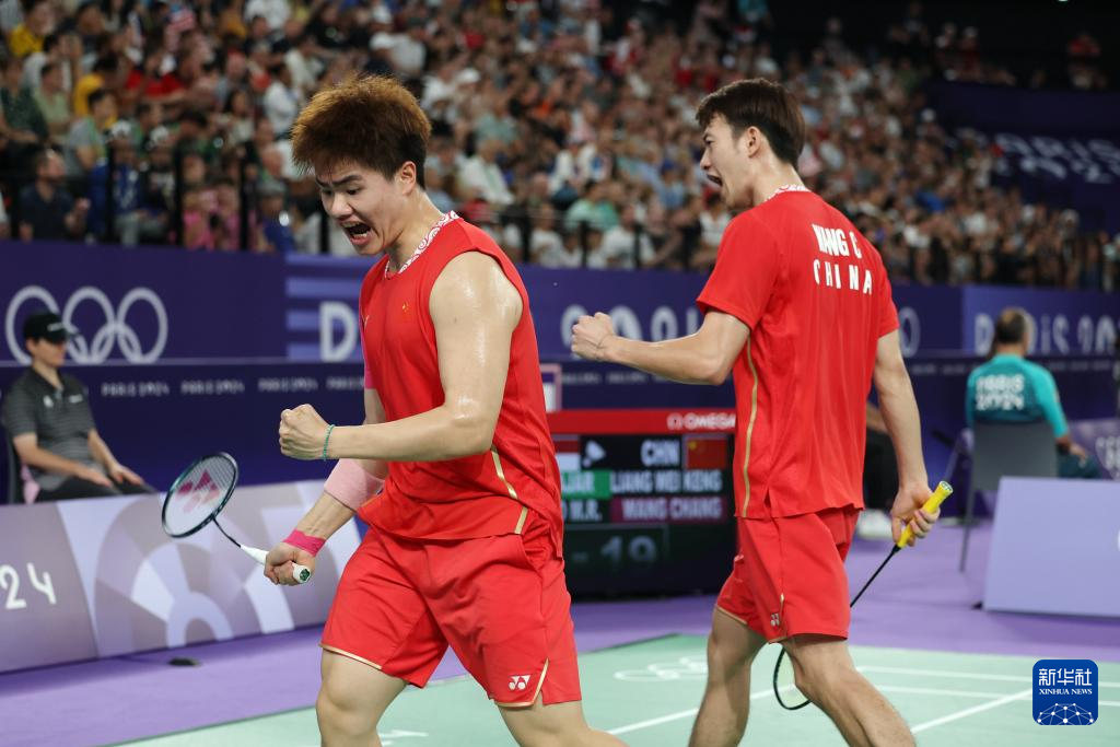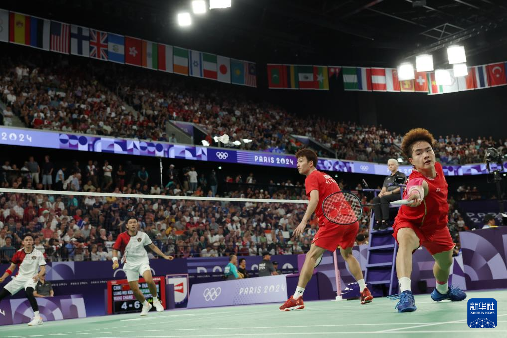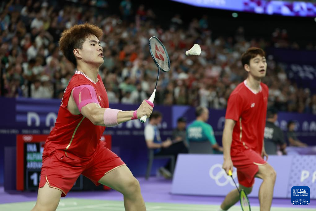 当日,在巴黎奥运会羽毛球项目男子双打四分之一决赛中,中国组合梁伟铿/王昶2比0战胜印度尼西亚组合阿尔菲安/阿迪安托,晋级四强。