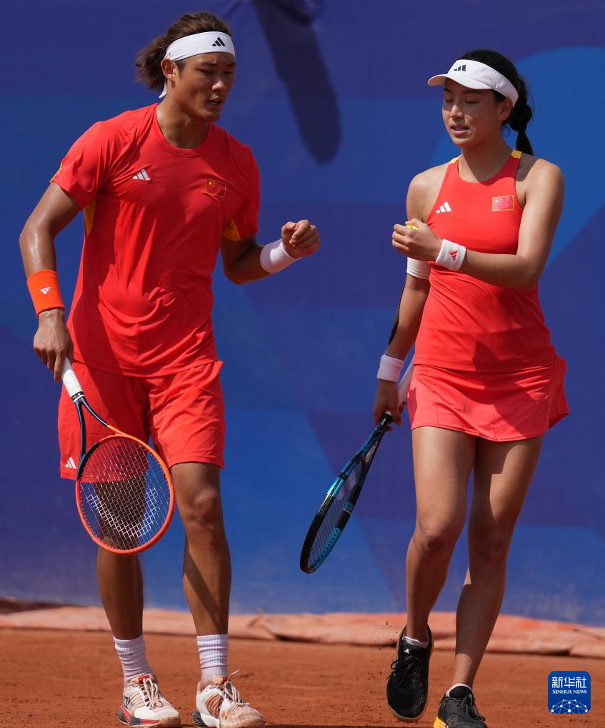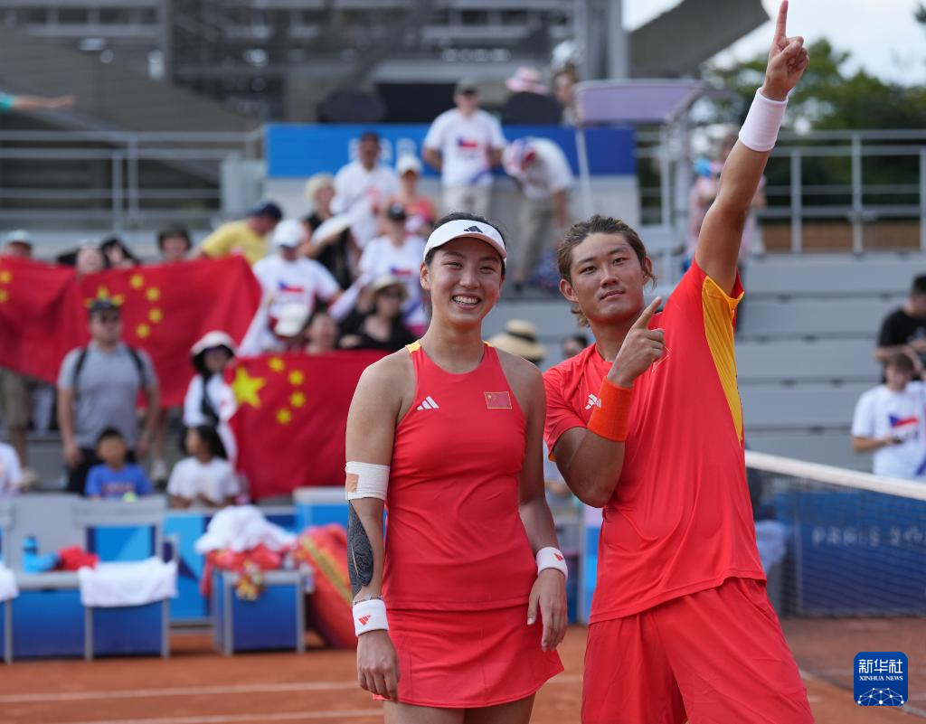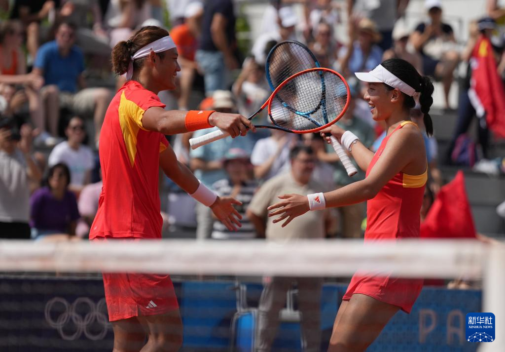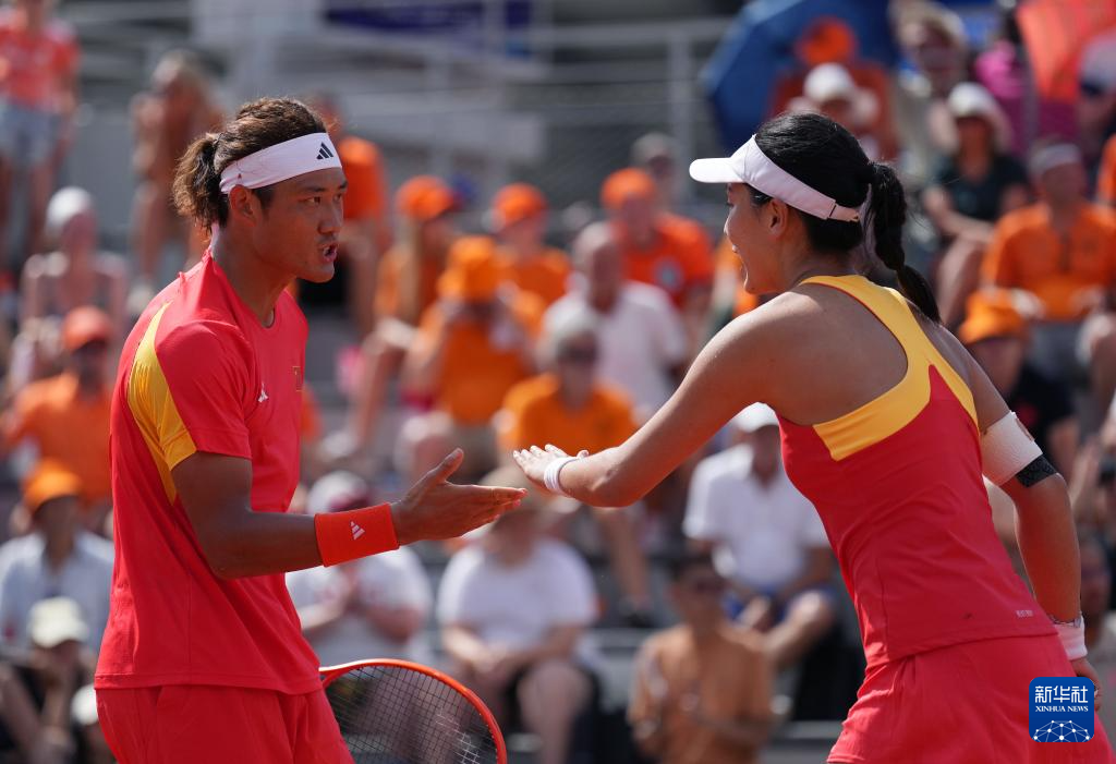 当日,在巴黎奥运会网球混合双打半决赛中,中国组合王欣瑜/张之臻战胜荷兰组合舒尔斯/库尔霍夫,晋级决赛。