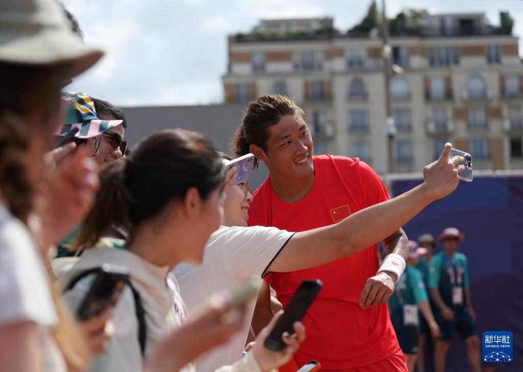 8月1日,张之臻(右一)在比赛后与球迷合影。
