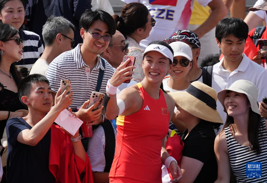 8月1日,王欣瑜(中)在比赛后与球迷合影。