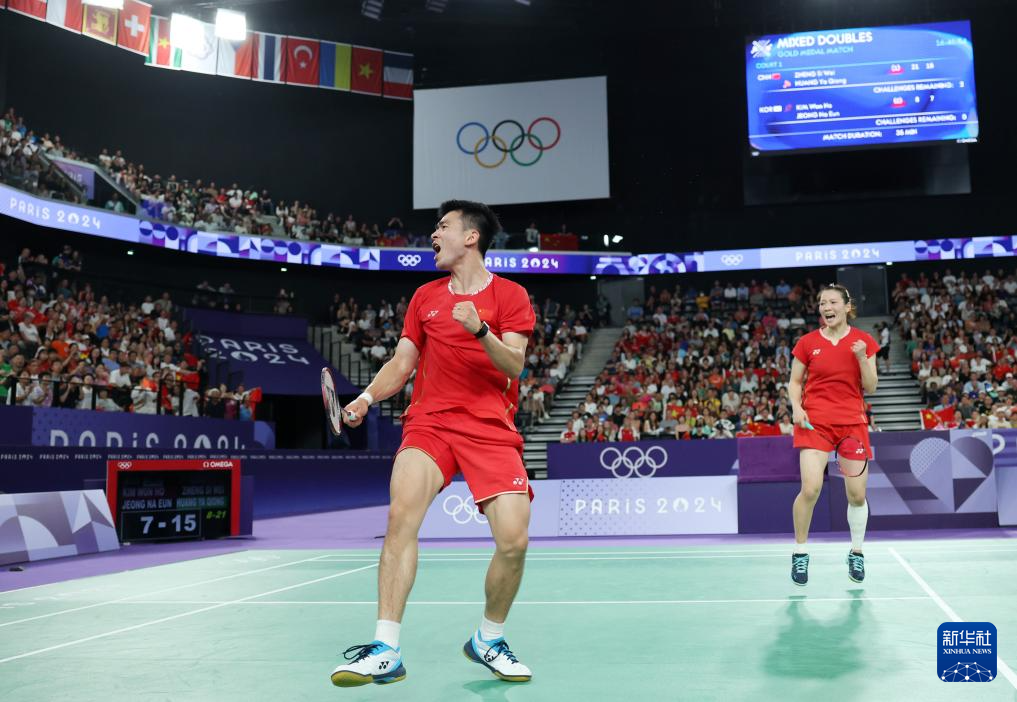 当日,在巴黎奥运会羽毛球混合双打决赛中,中国组合郑思维/黄雅琼2比0战胜韩国组合金元昊/郑娜银,夺得金牌。
