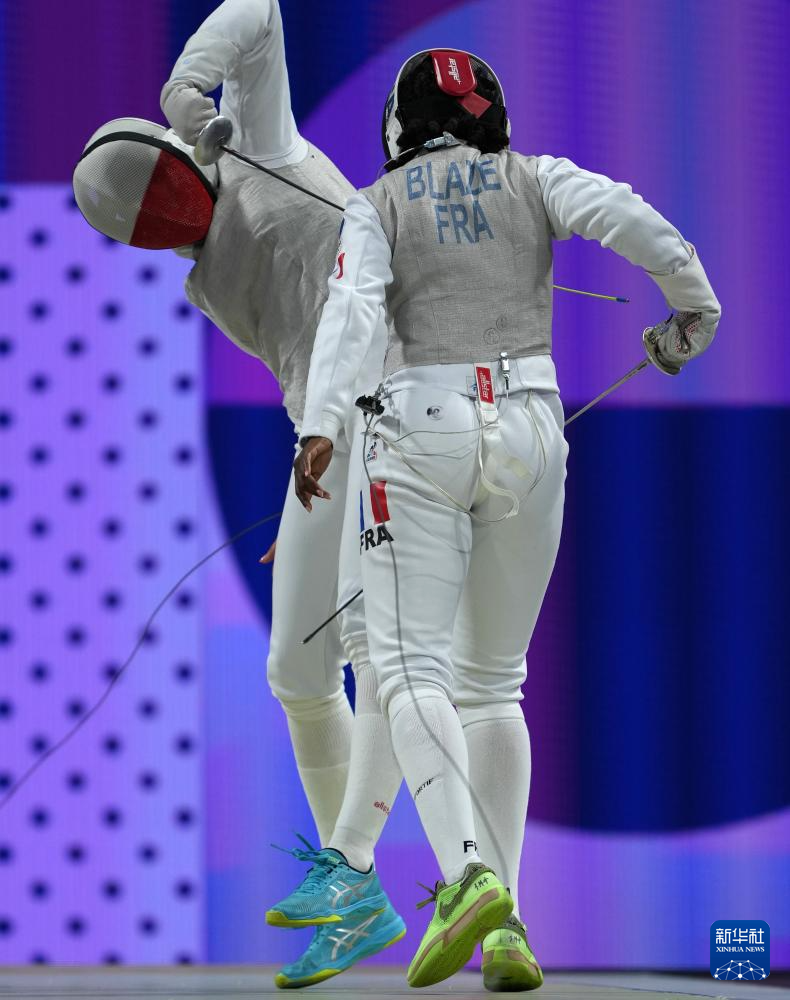 8月1日,法国队选手布拉兹(右)与波兰队选手西诺拉兹卡在比赛中。新华社记者 费茂华 摄