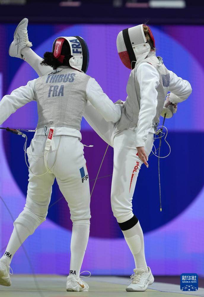8月1日,法国队选手蒂布斯(左)与波兰队选手瓦尔奇克在比赛中。新华社记者 费茂华 摄