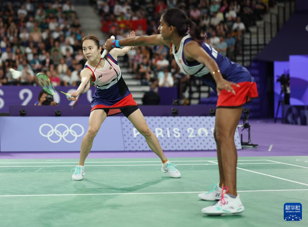 8月2日,马来西亚组合陈康乐(左)/蒂娜在比赛中。新华社记者 贾浩成 摄