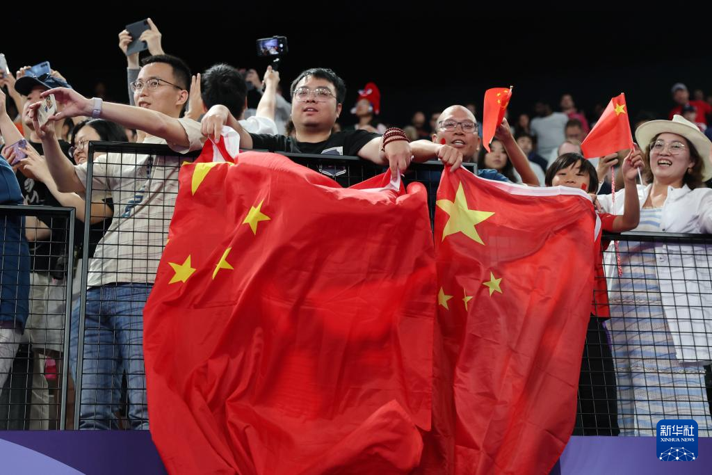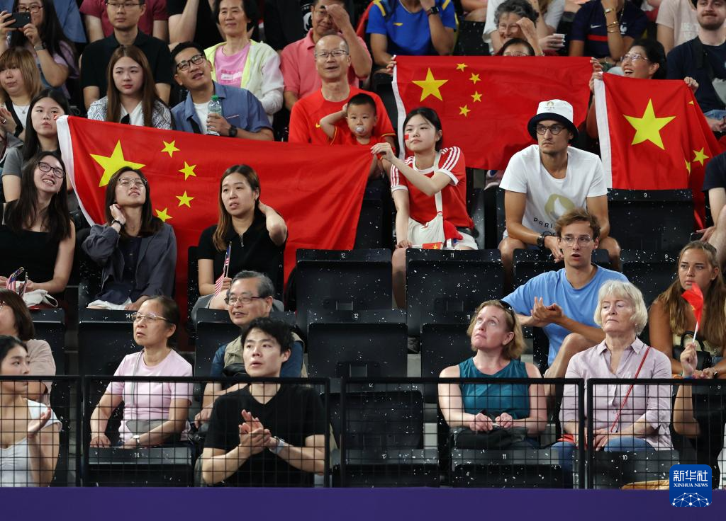 8月2日,观众在比赛现场为中国队加油。新华社记者 陈斌 摄