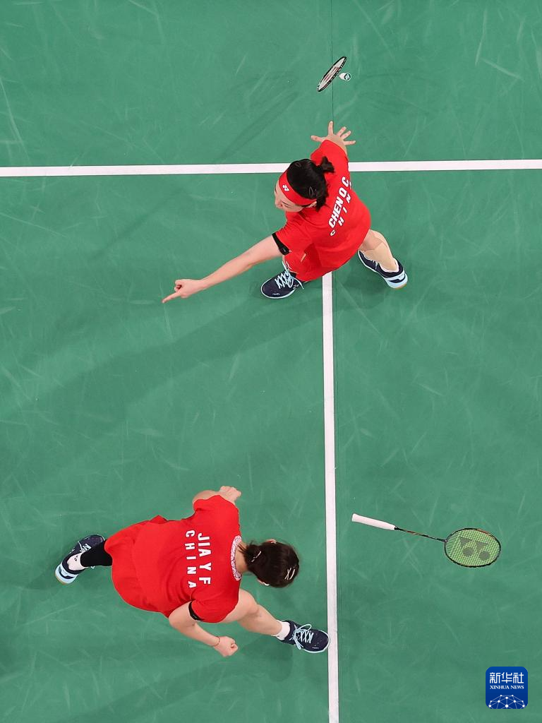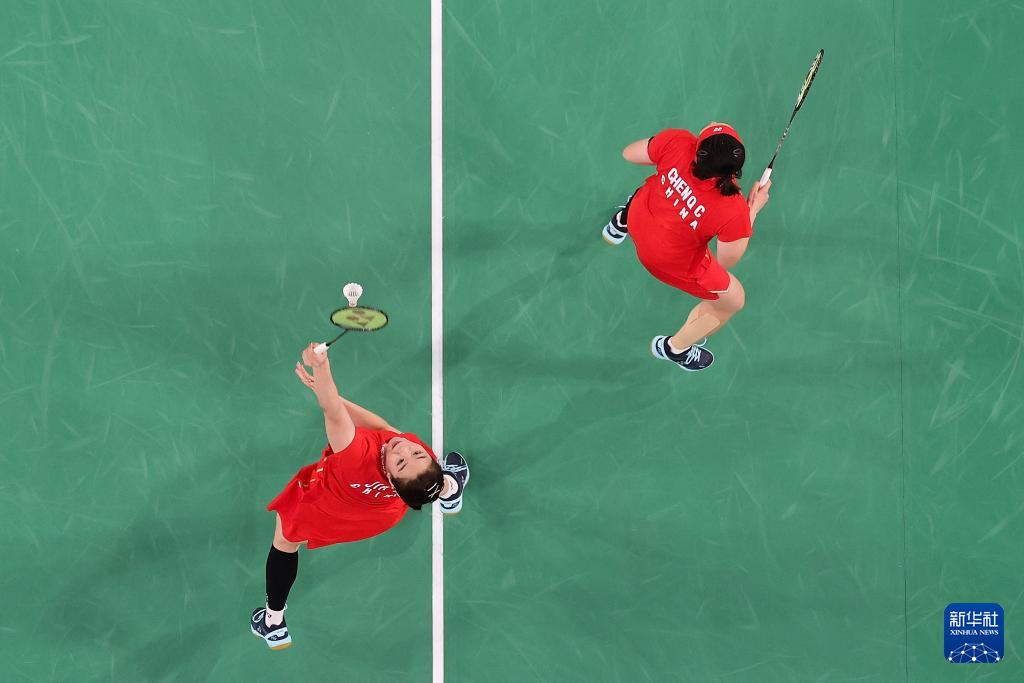 8月2日,中国组合陈清晨(左)/贾一凡在比赛中。新华社记者 贾浩成 摄