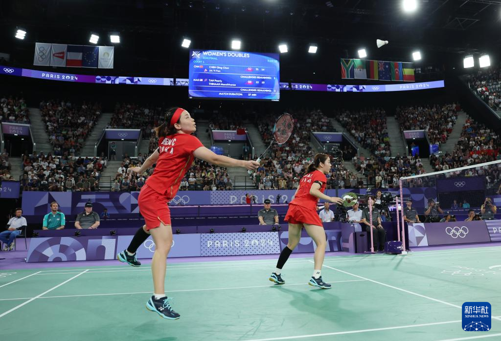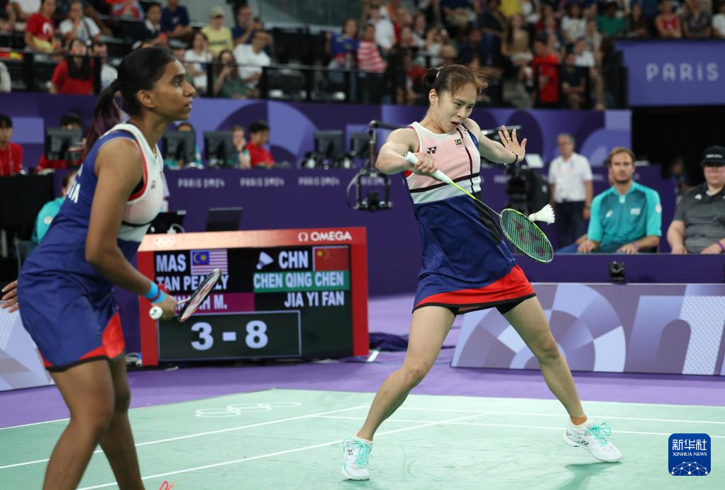 当日,在巴黎奥运会羽毛球项目女双半决赛中,中国组合陈清晨/贾一凡2比1战胜马来西亚组合陈康乐/蒂娜,晋级决赛。