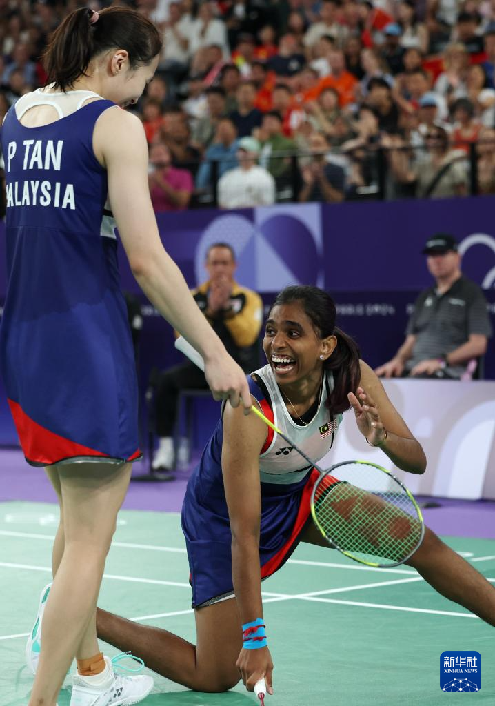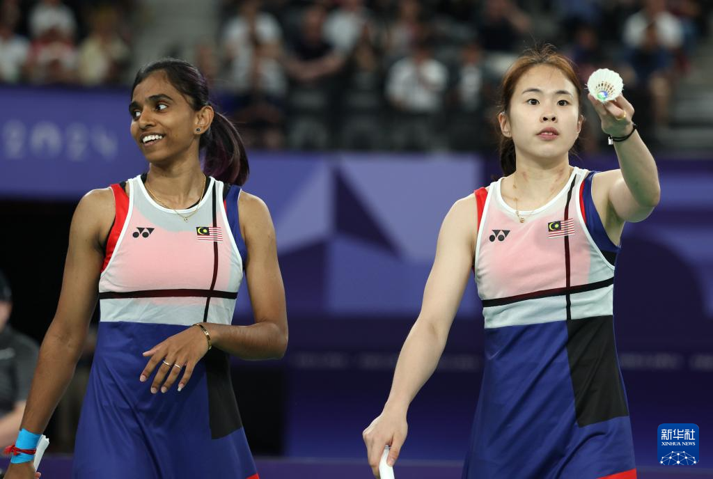 8月2日,马来西亚组合陈康乐/蒂娜(右)在比赛中。新华社记者 陈斌 摄