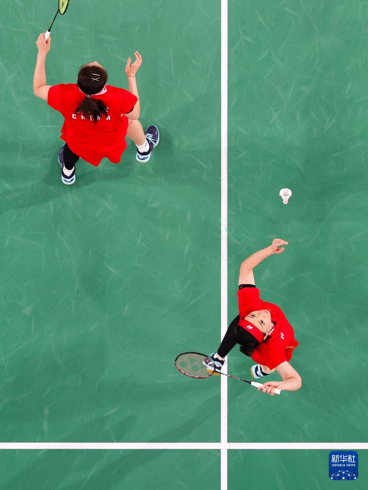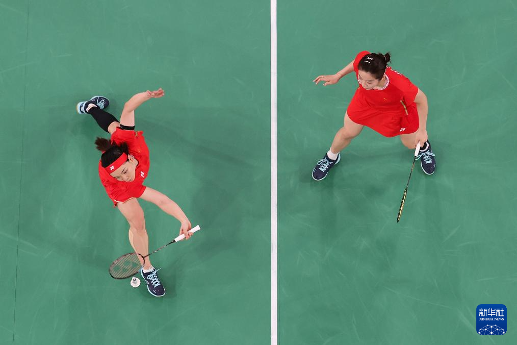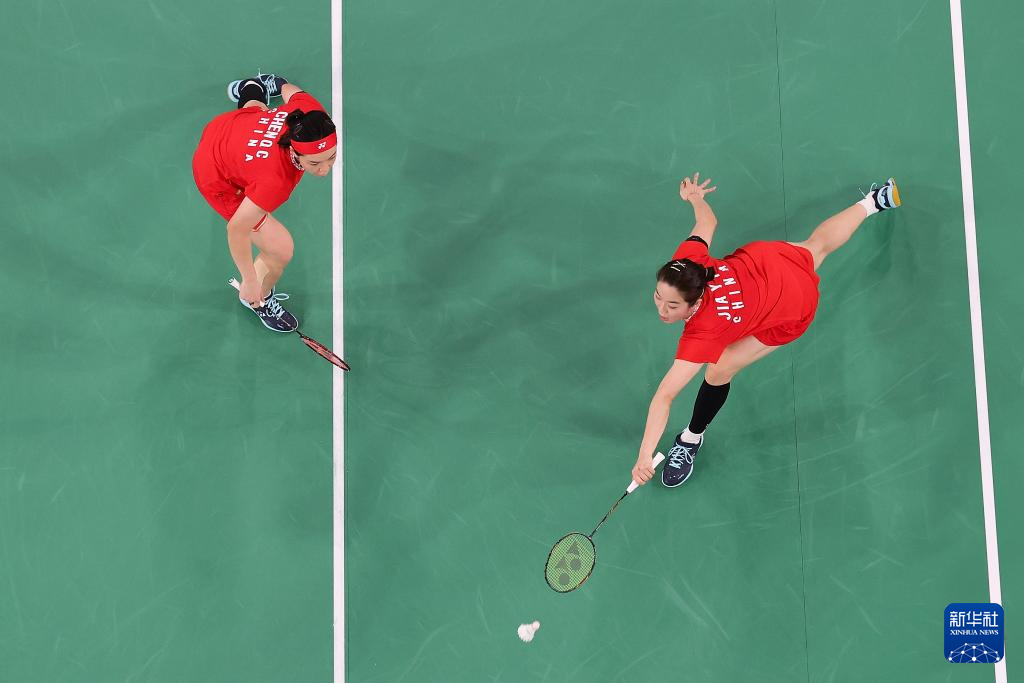 8月2日,中国组合陈清晨(左)/贾一凡在比赛中。新华社记者 任正来 摄
