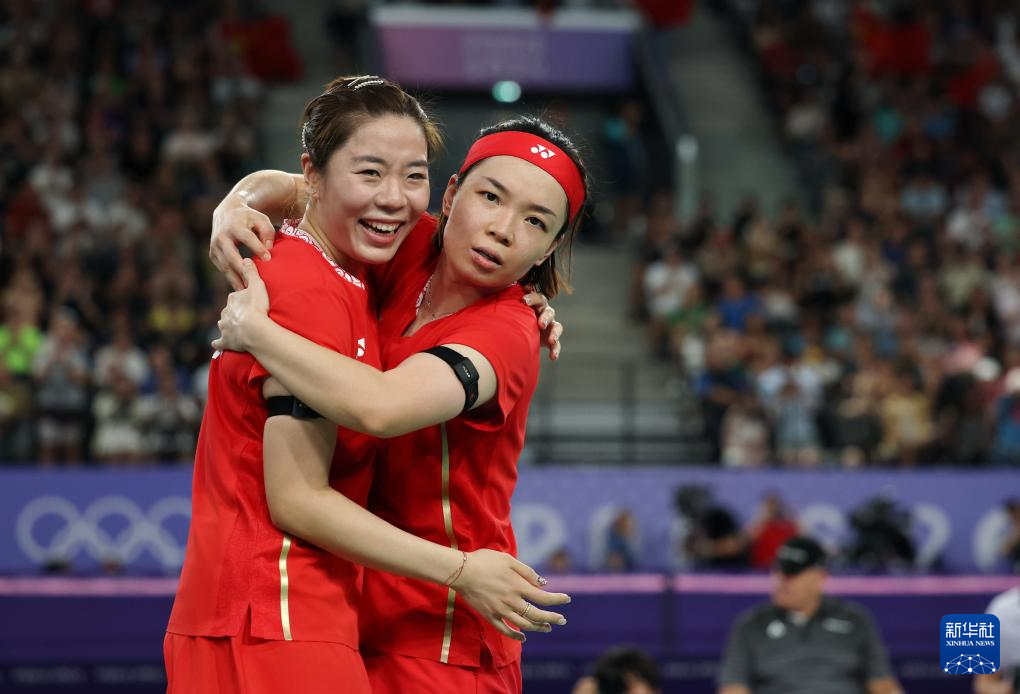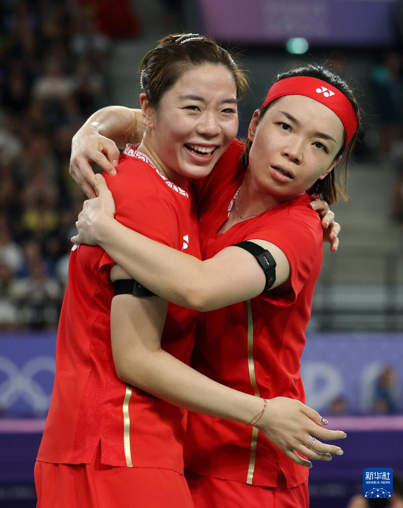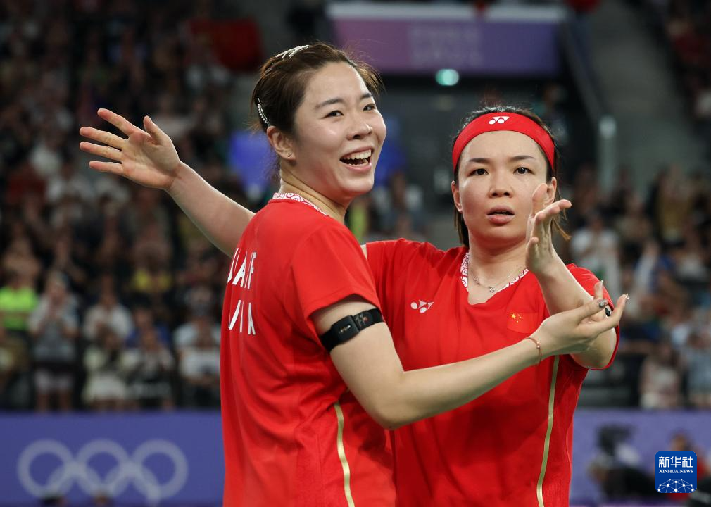 8月2日,中国组合陈清晨(左)/贾一凡在获胜后庆祝。新华社记者 任正来 摄