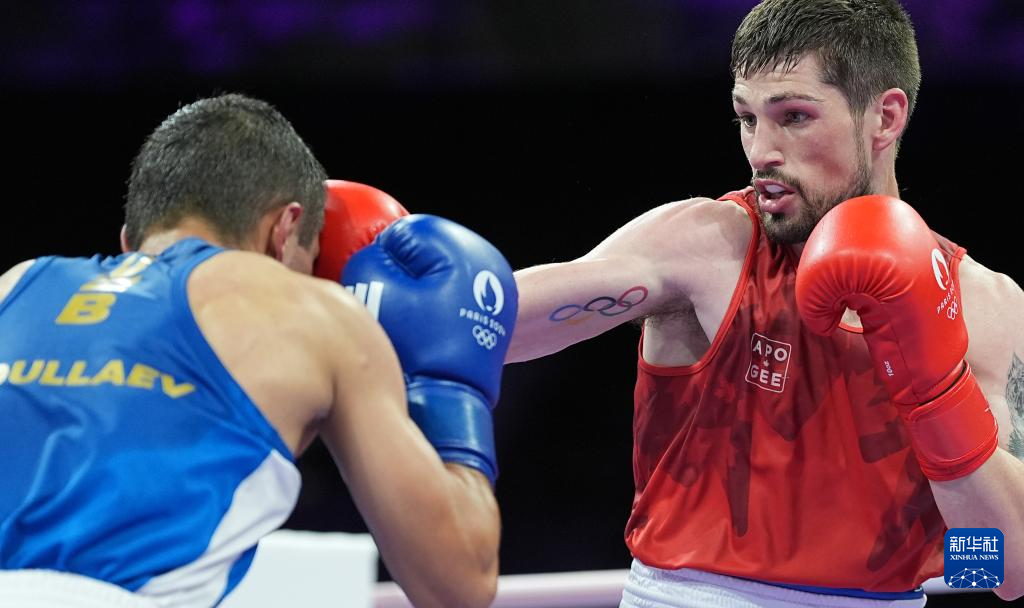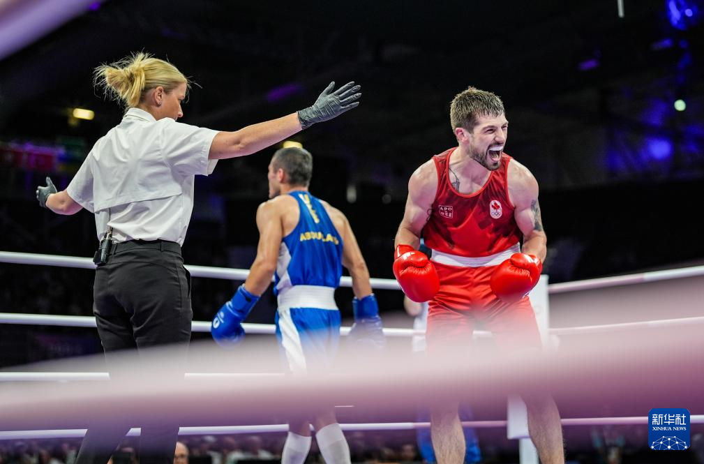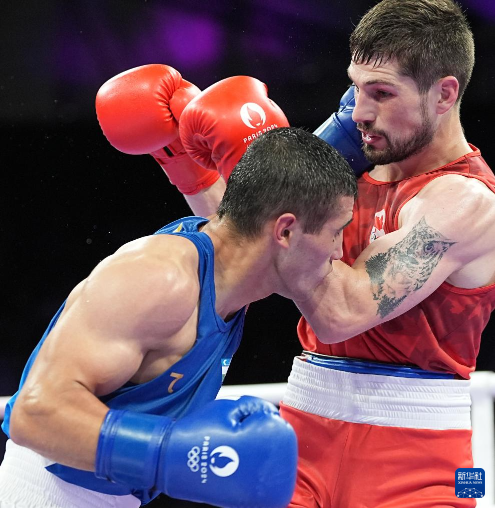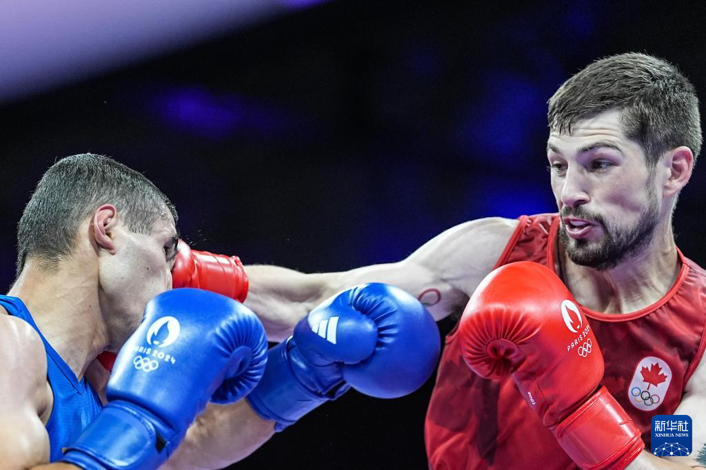 当日,巴黎奥运会拳击项目男子63.5公斤级四分之一决赛在北巴黎竞技场举行。加拿大选手桑福德战胜乌兹别克斯坦选手阿卜杜拉耶夫,晋级四强。