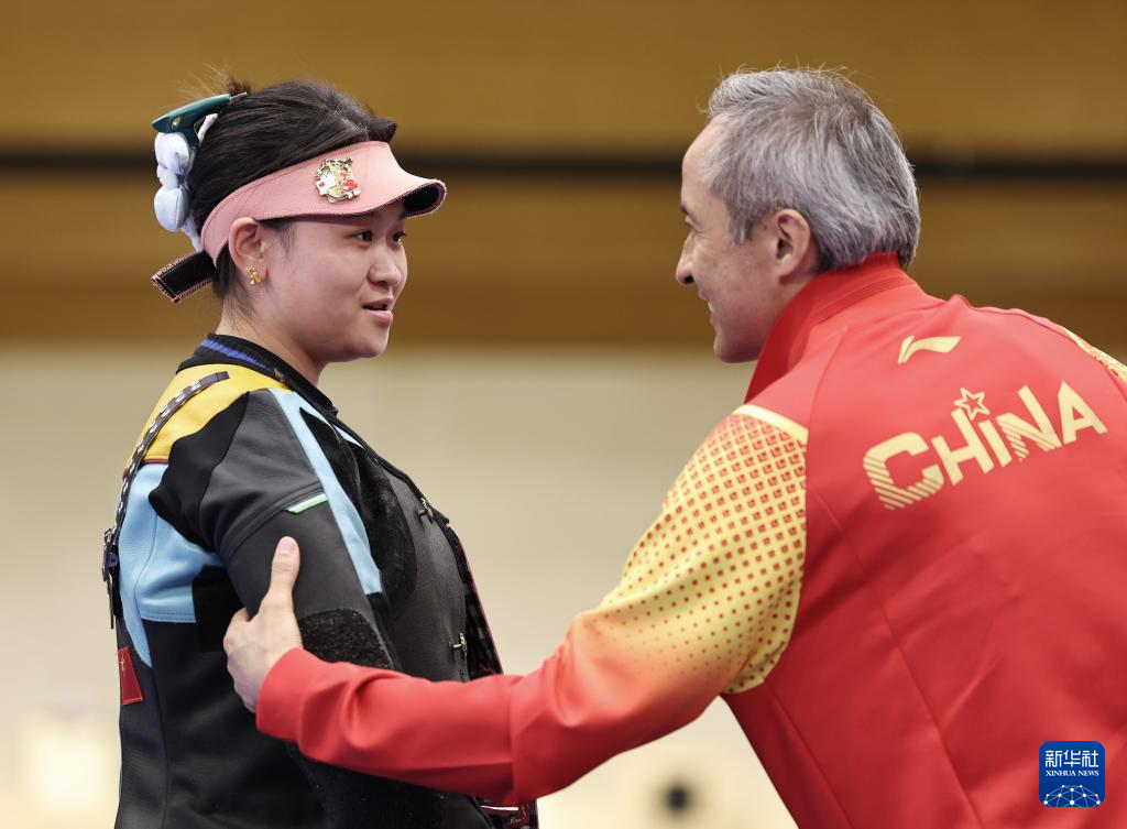 8月2日,中国选手张琼月(左)与教练姚烨交流。新华社记者 张帆 摄