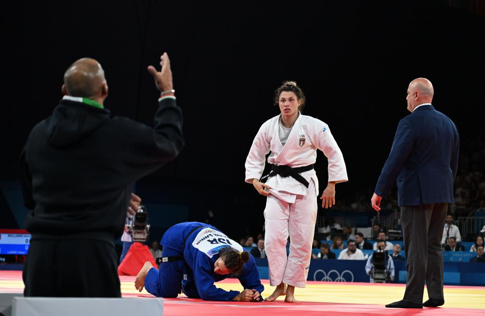决赛中,世界排名第一的意大利名将贝兰迪和以色列选手拉尼尔打得非常沉闷,意大利人早早拿到一个技有,拉尼尔强势反攻之下,反而先吃到第三个罚分,目送贝兰迪登顶。