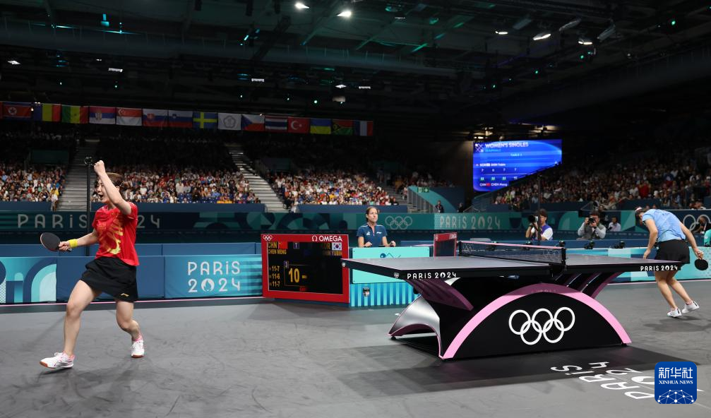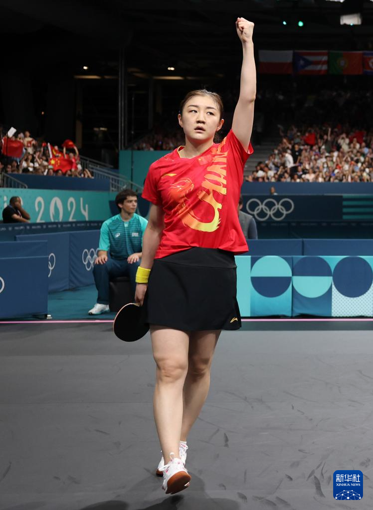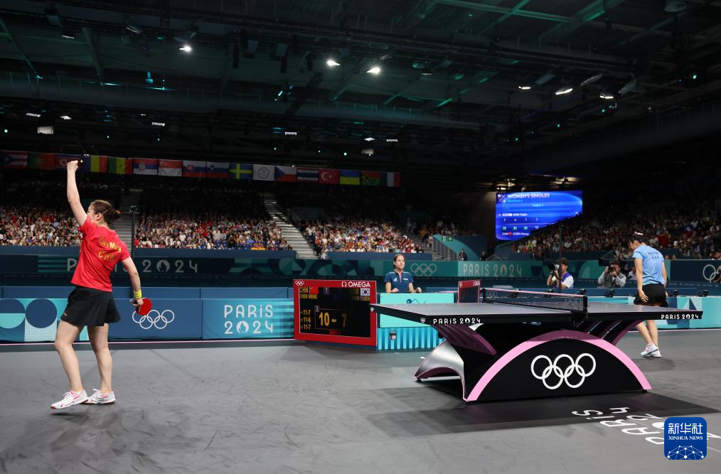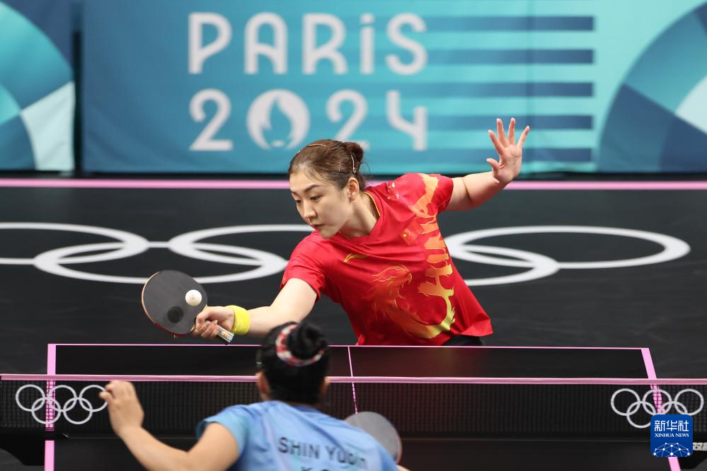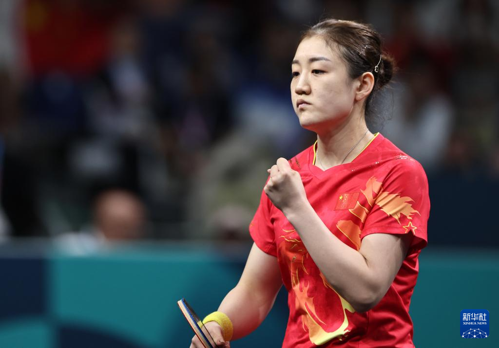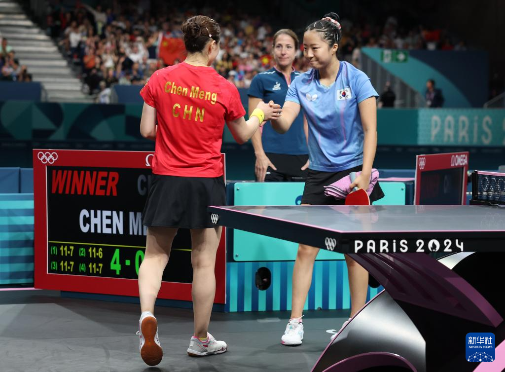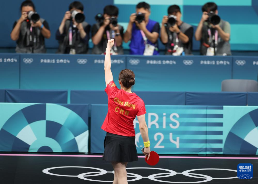 当日,在巴黎奥运会乒乓球女单半决赛中,中国选手陈梦4比0战胜韩国选手申裕斌,晋级决赛。