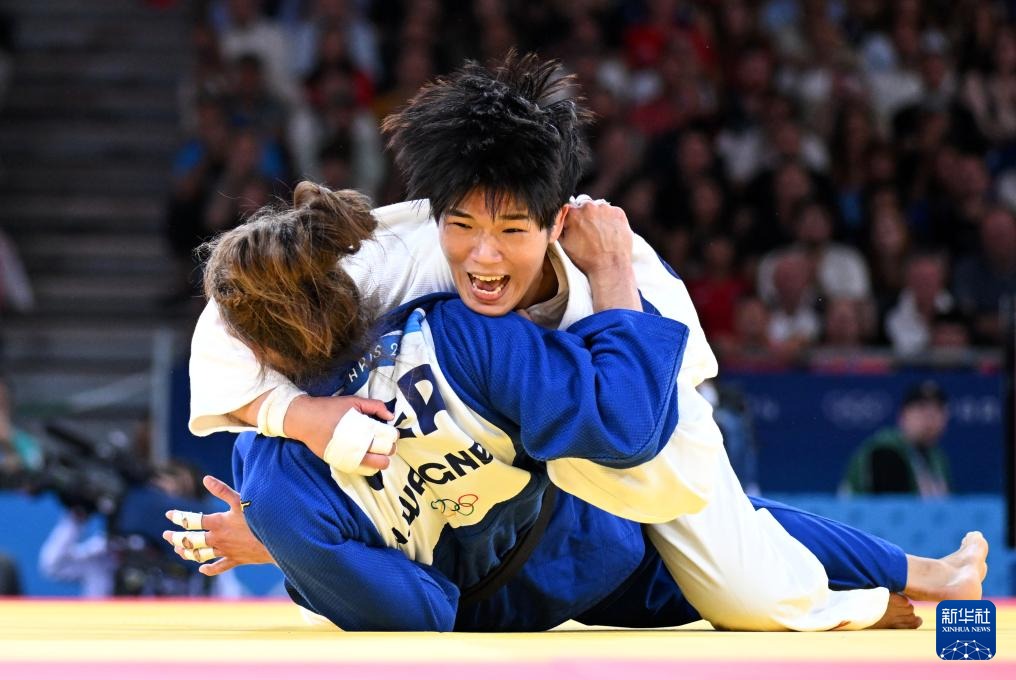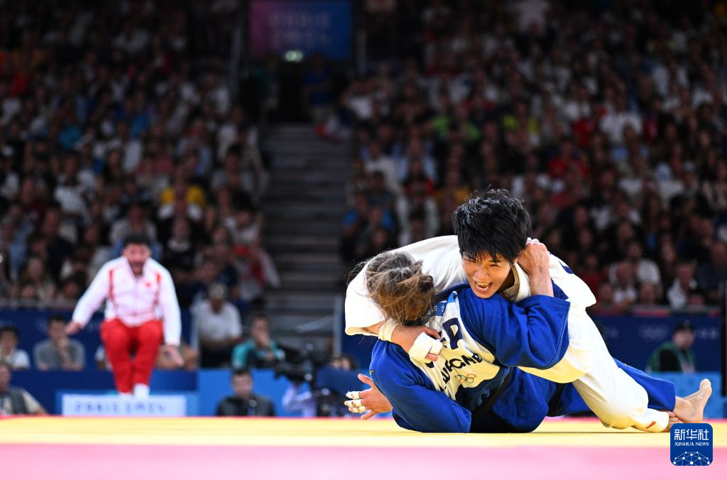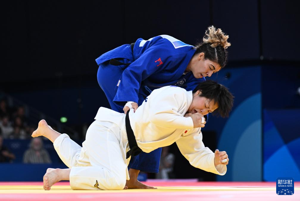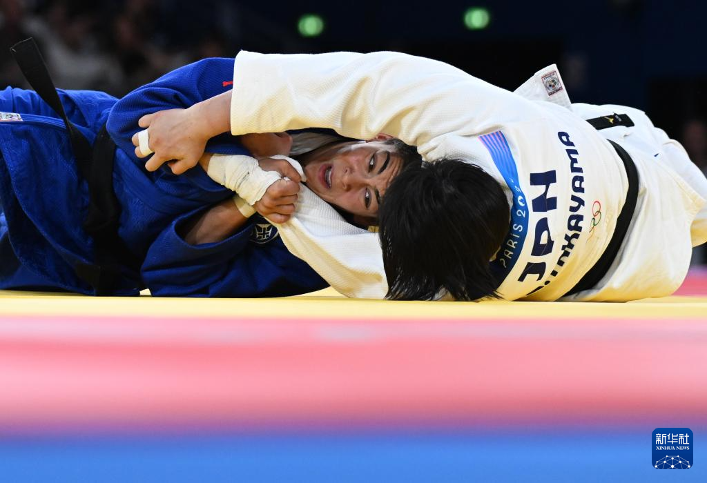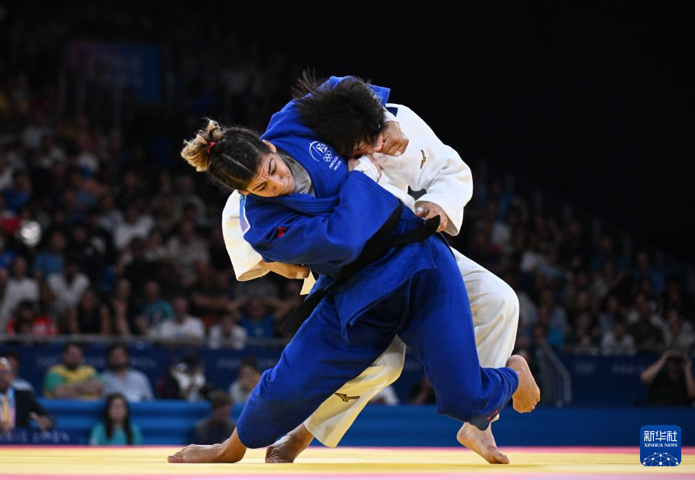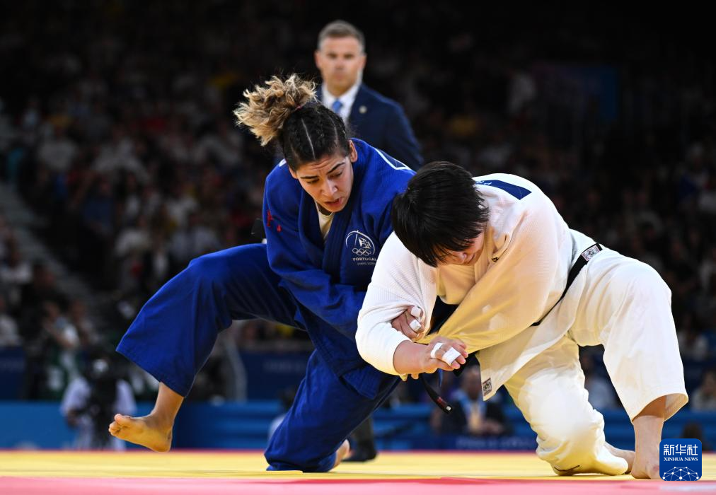 8月1日,葡萄牙选手帕特里夏·桑帕约(上)和日本选手高山莉加在比赛中。新华社记者 武巍 摄