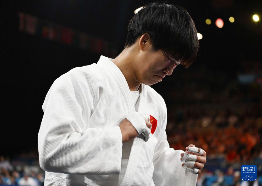 8月1日,中国选手马振昭(右)在比赛后落泪。新华社记者 李安 摄