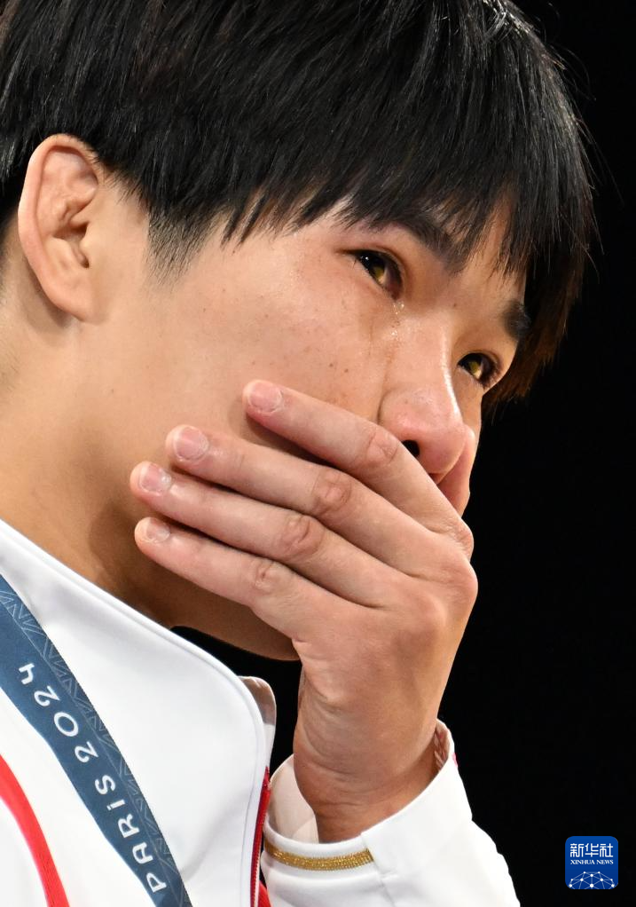 8月1日,中国选手马振昭在颁奖仪式上落泪。新华社记者 李安 摄