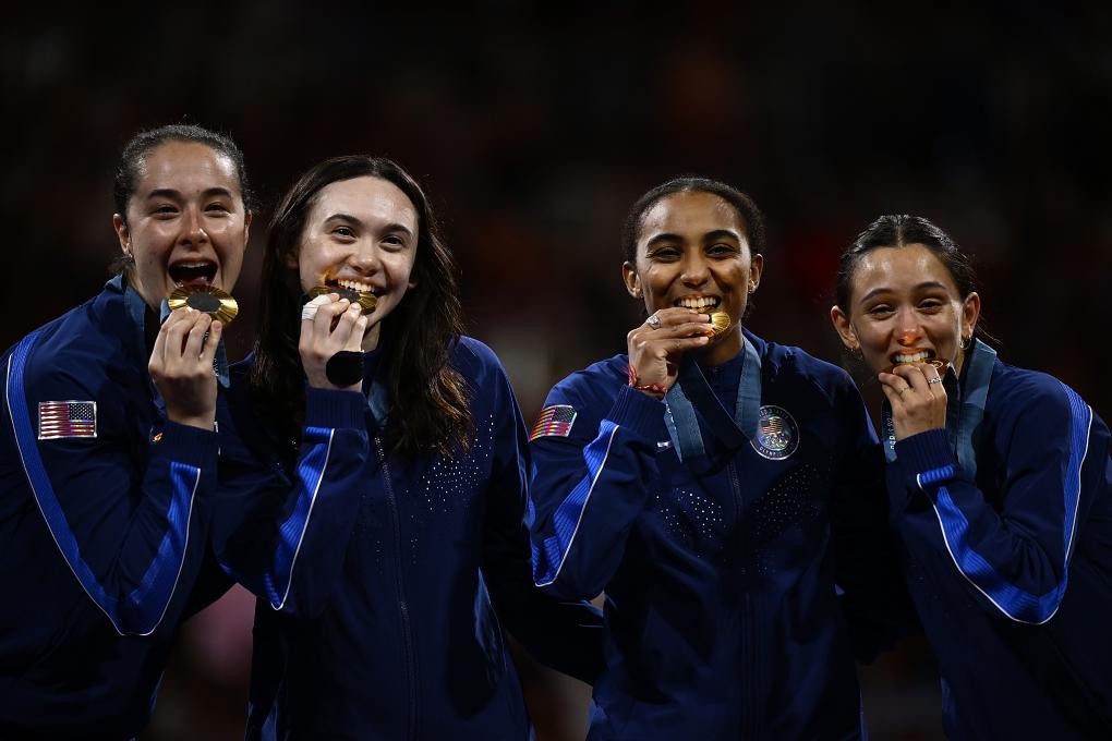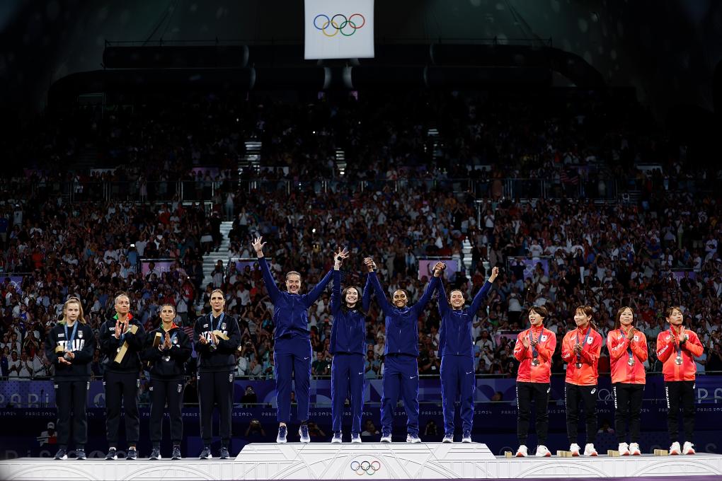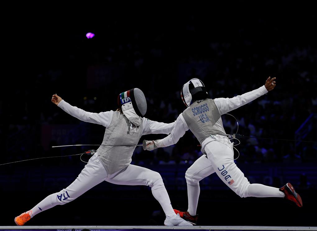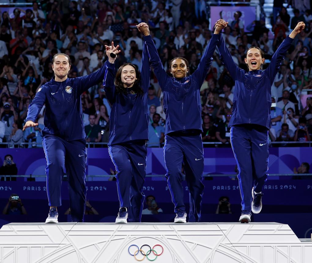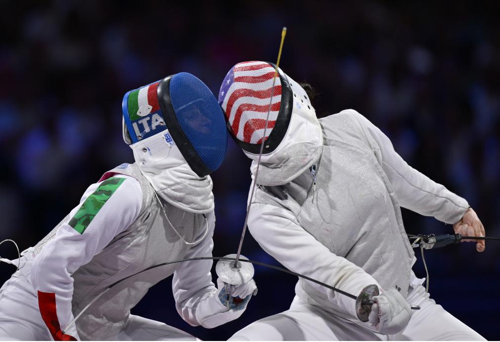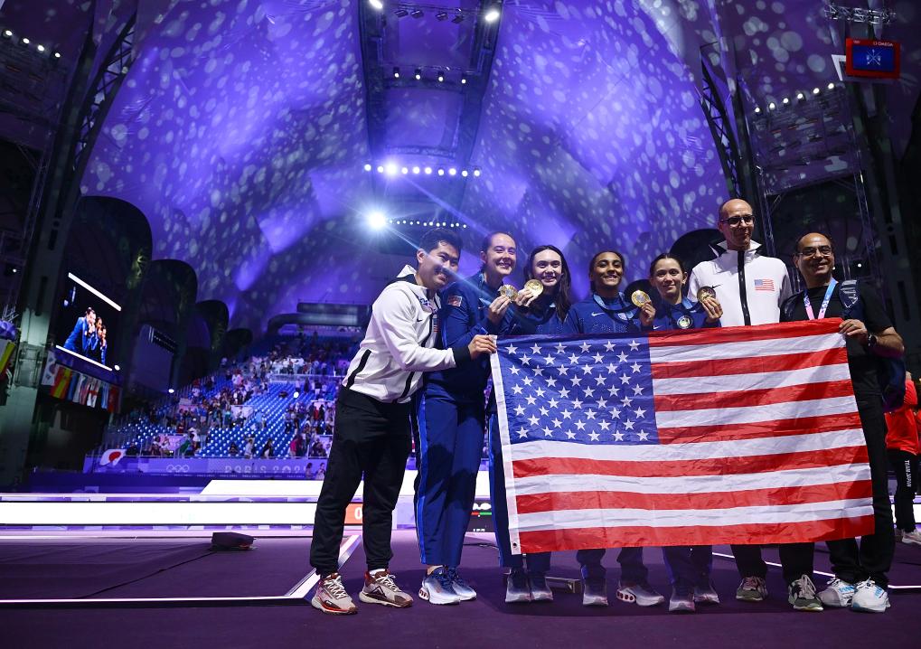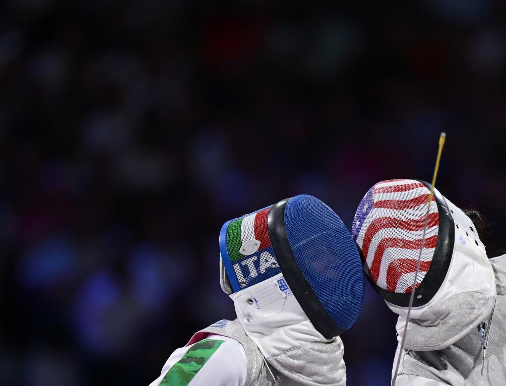 当日,在巴黎奥运会击剑项目女子团体花剑金牌赛中,美国队45比39战胜意大利队,获得冠军。