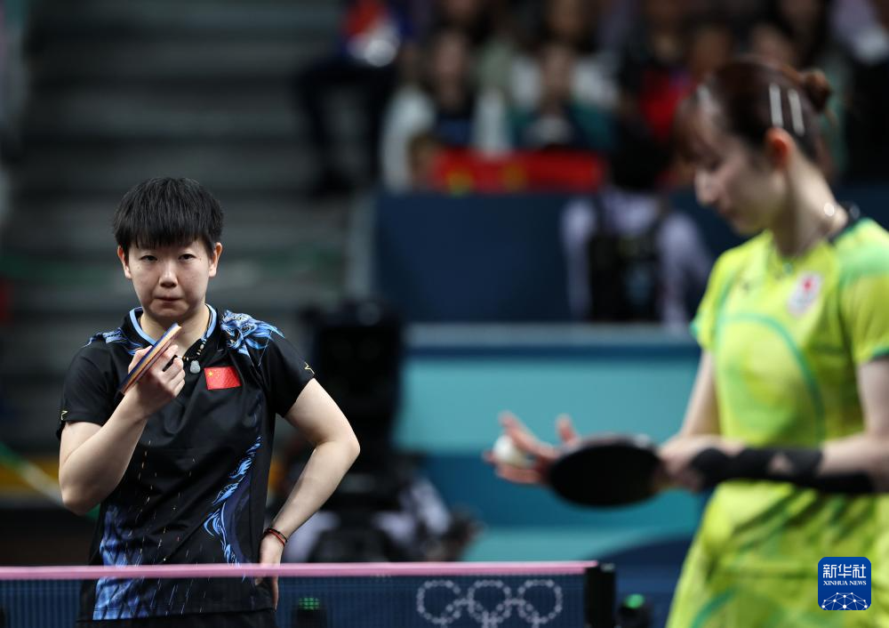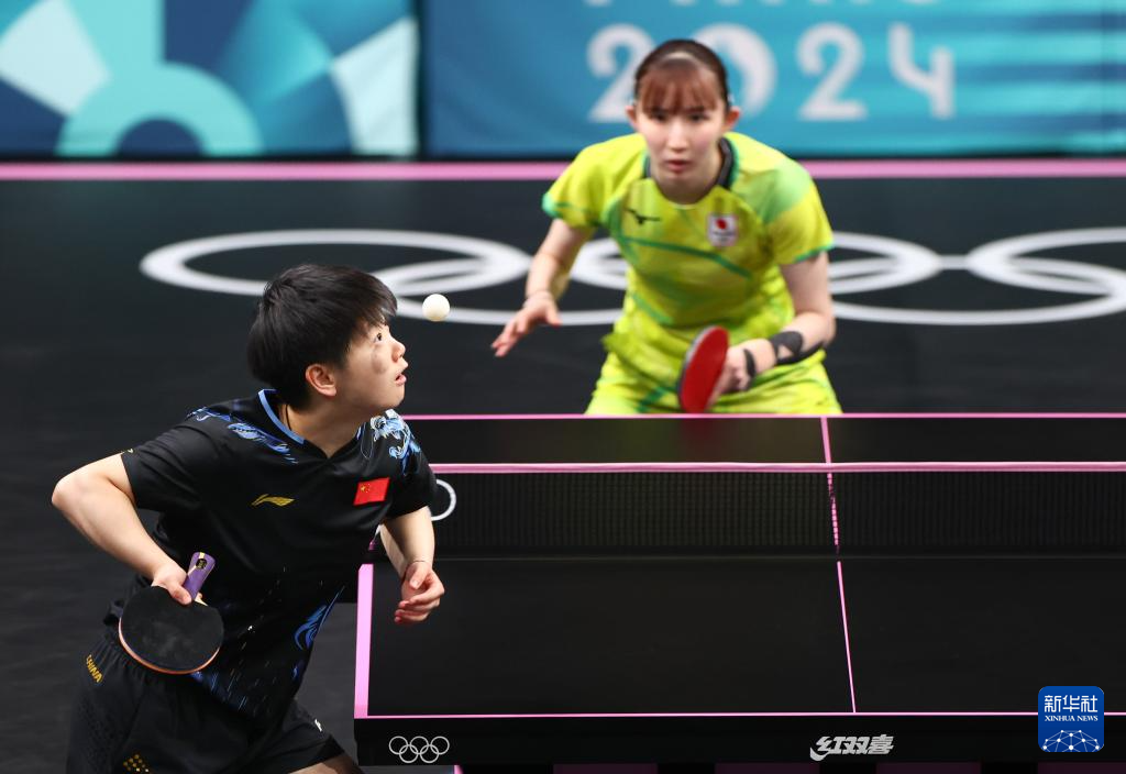 8月2日,孙颖莎(左)在比赛中。新华社记者 王东震 摄