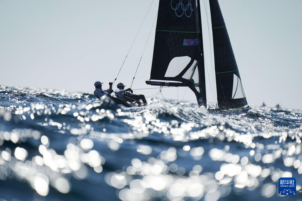 8月1日,克罗地亚选手赛姆/米霍维尔在男子49人级奖牌轮中,但随后该比赛因风力不足而被取消。新华社记者 郑焕松 摄