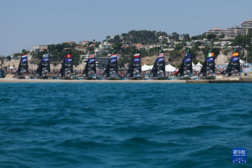 当日,2024年巴黎奥运会帆船项目男子49人级、女子49人FX级快速艇奖牌轮因马赛港竞赛海域风力不足而被推迟举行。