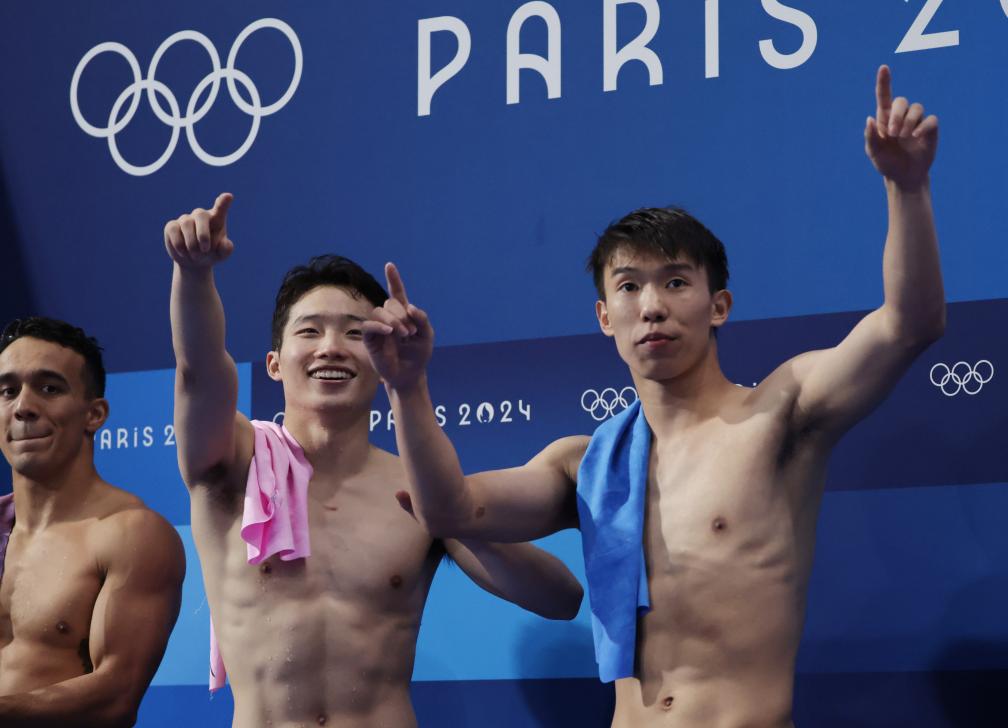 8月2日,中国选手龙道一(左)/王宗源合影。新华社记者 张玉薇 摄