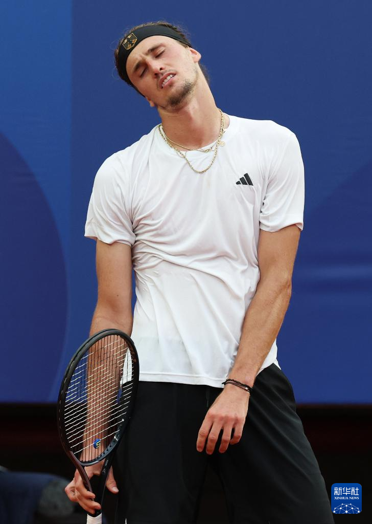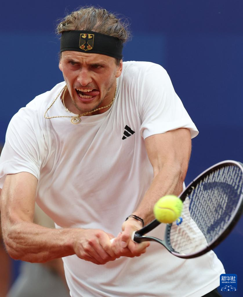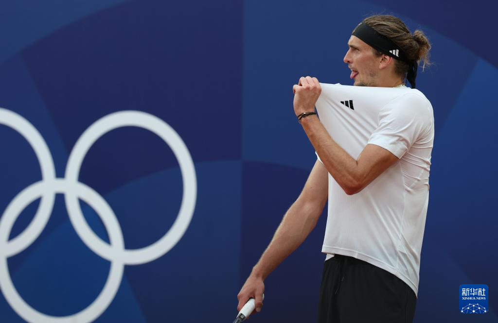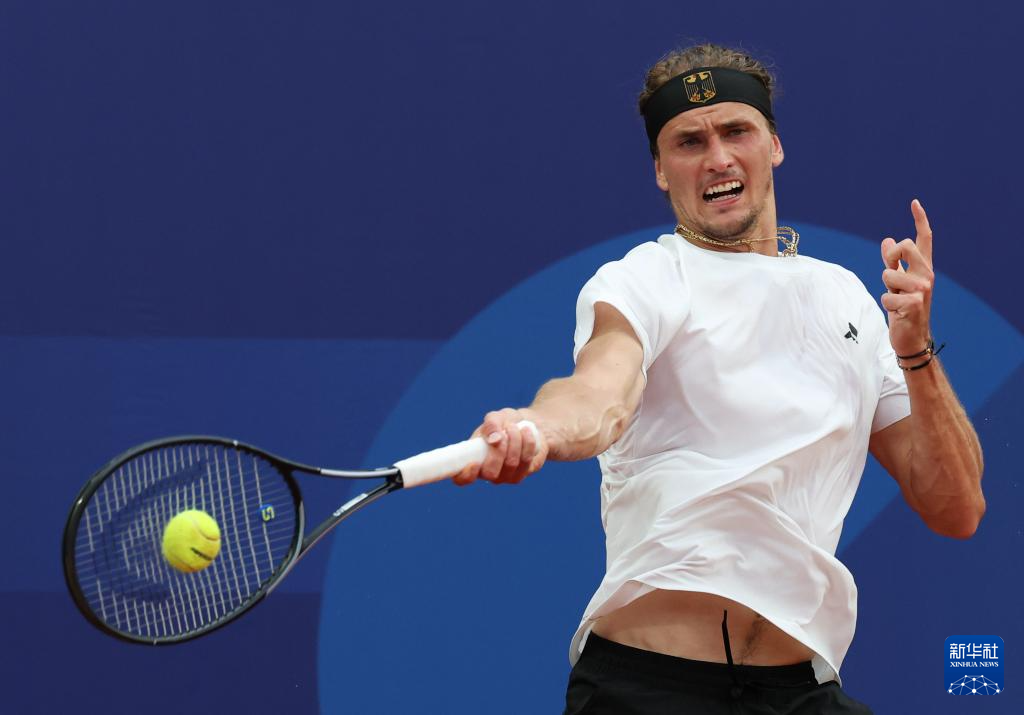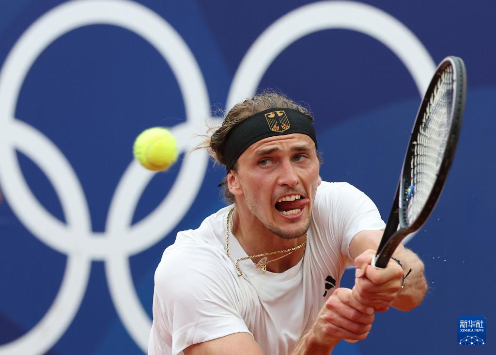 8月1日,德国选手兹维列夫在比赛中回球。新华社记者 高静 摄