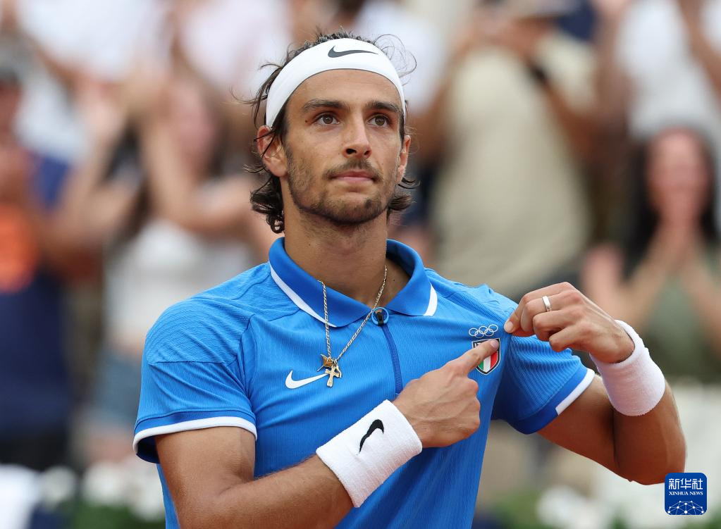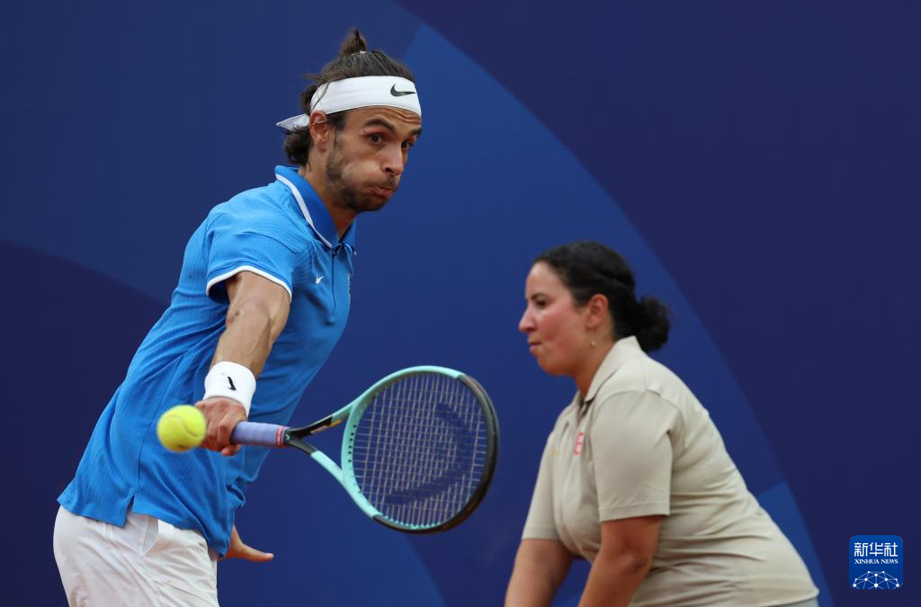 8月1日,意大利选手穆塞蒂在比赛中回球。新华社记者 高静 摄