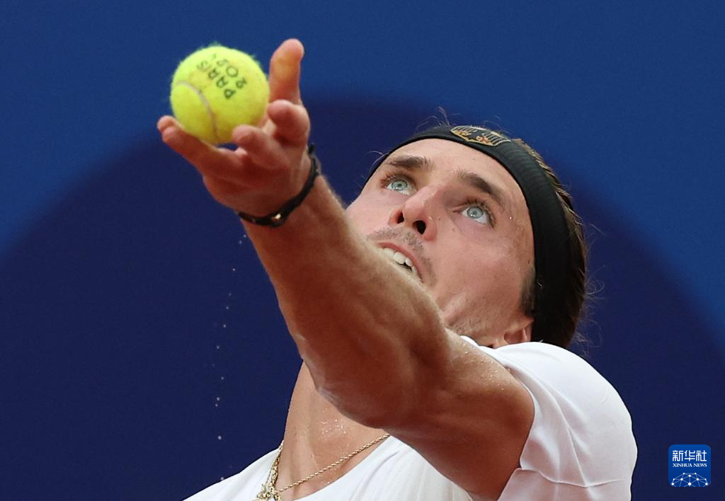 8月1日,德国选手兹维列夫在比赛中发球。新华社记者 高静 摄