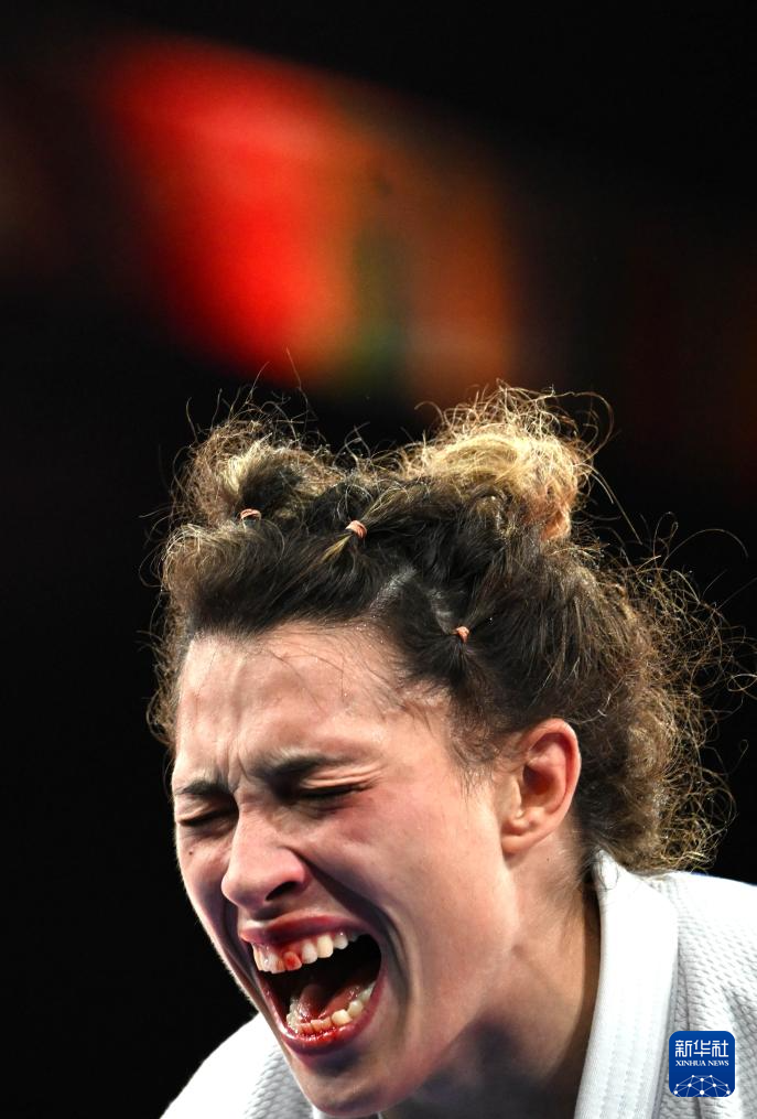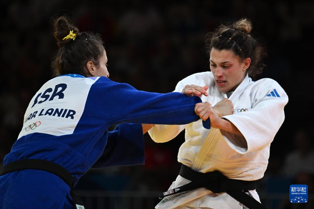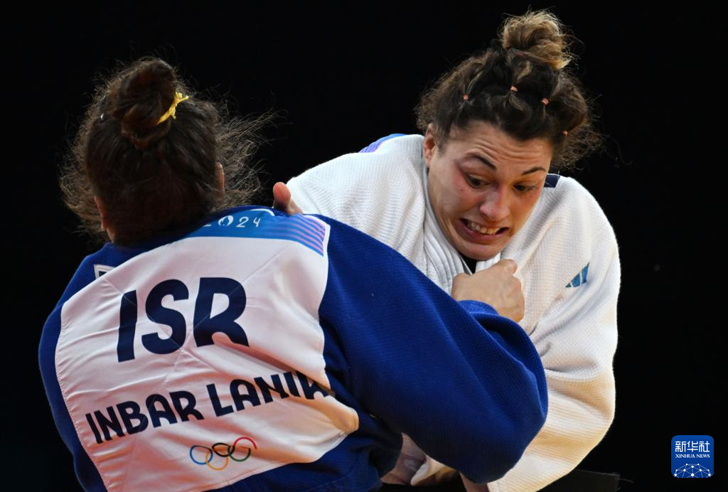 8月1日,意大利选手阿莉切·贝兰迪(右)与以色列选手茵巴尔·兰尼尔在比赛中。新华社记者 李安 摄