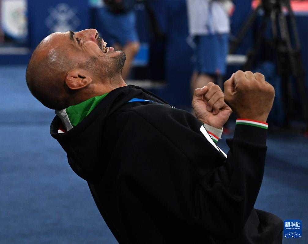 8月1日,意大利选手阿莉切·贝兰迪在庆祝胜利。新华社记者 武巍 摄