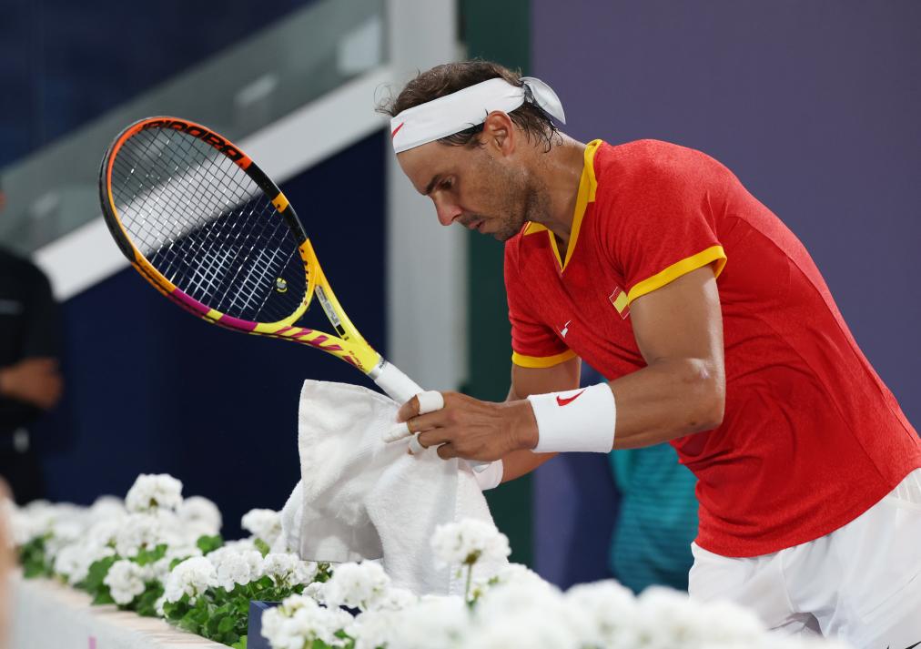 7月31日,西班牙选手纳达尔在比赛间隙。新华社记者 高静 摄