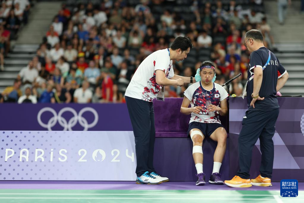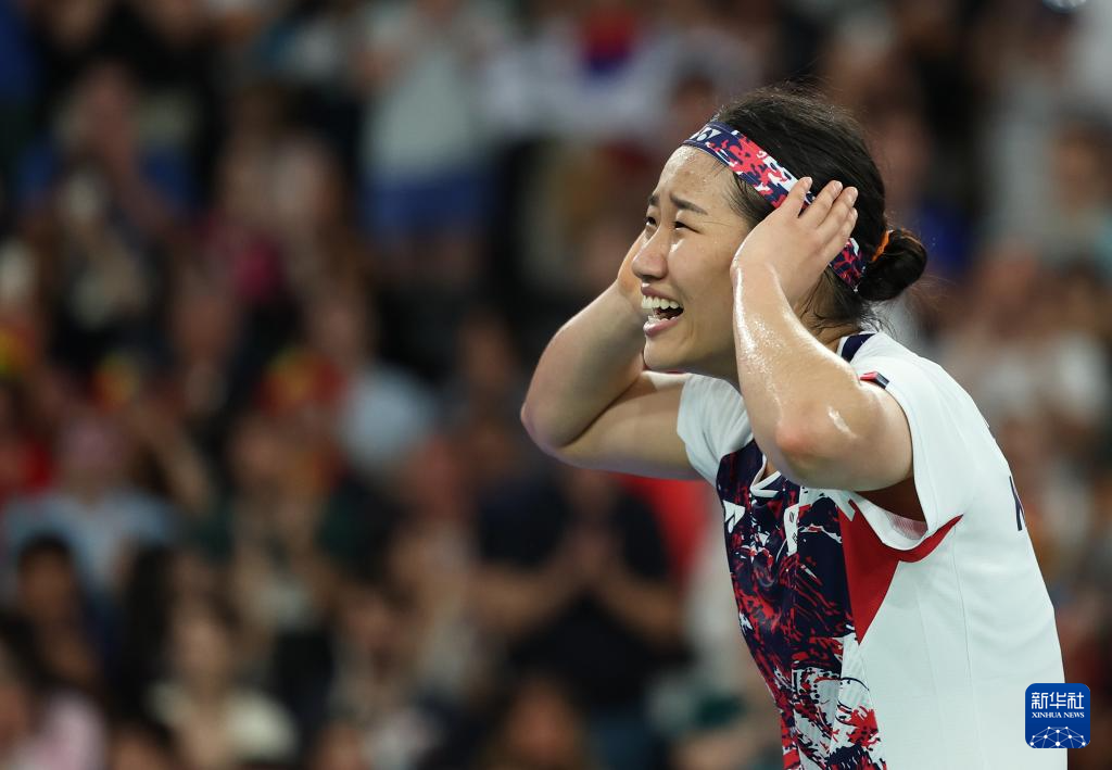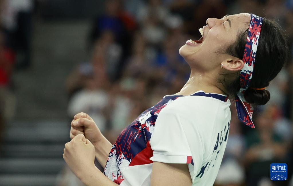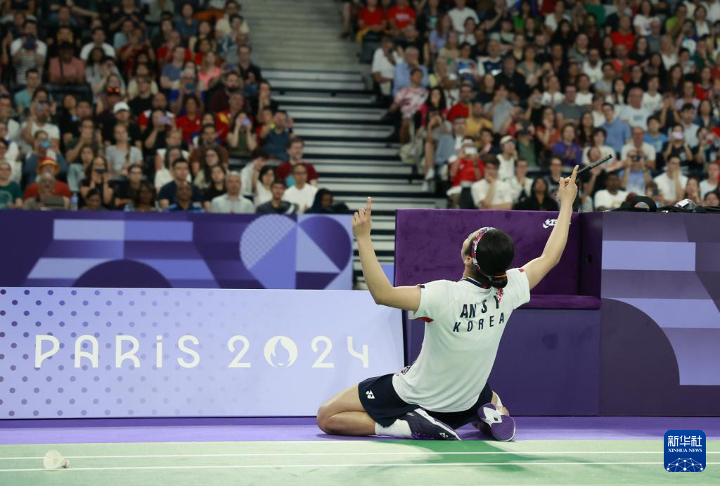 当日,在巴黎奥运会羽毛球女子单打四分之一决赛中,韩国选手安洗莹2比1战胜日本选手山口茜。